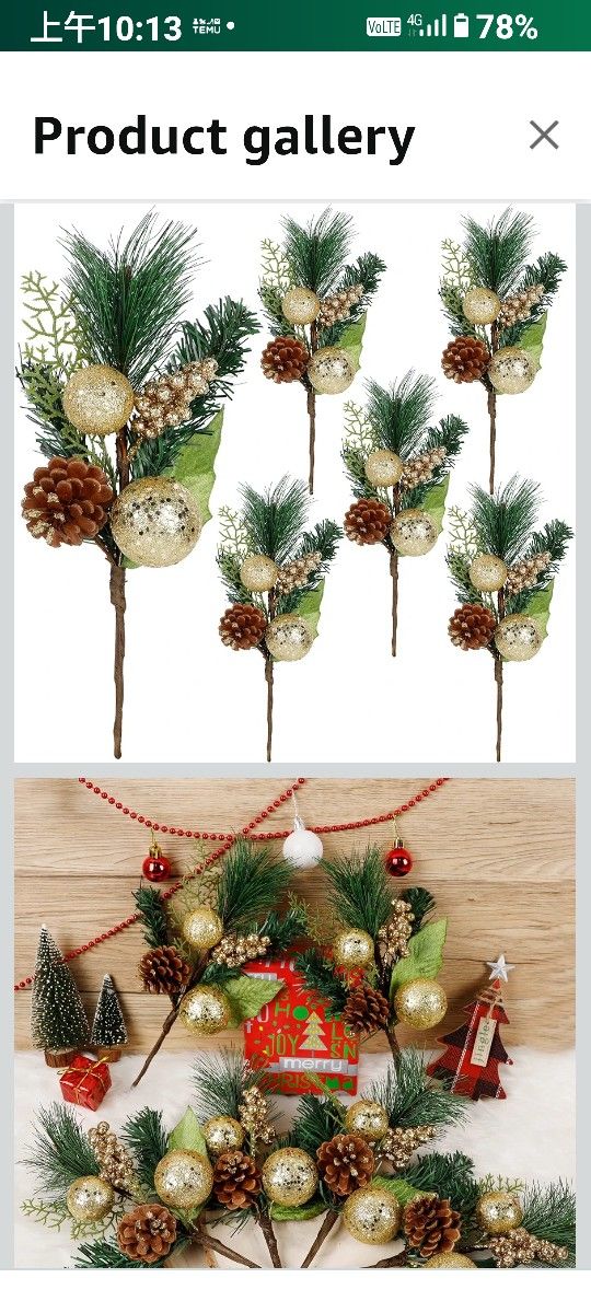 Christmas Tree Ornaments 6 Pcs 12'' Gold Picks and Sprays with Brown Pine Cone Green Poinsettia Leaf, Artificial Berry Branches Stems Decorations DIY Crafts for Vase Filler Wreath Decor (Gold) 3....66