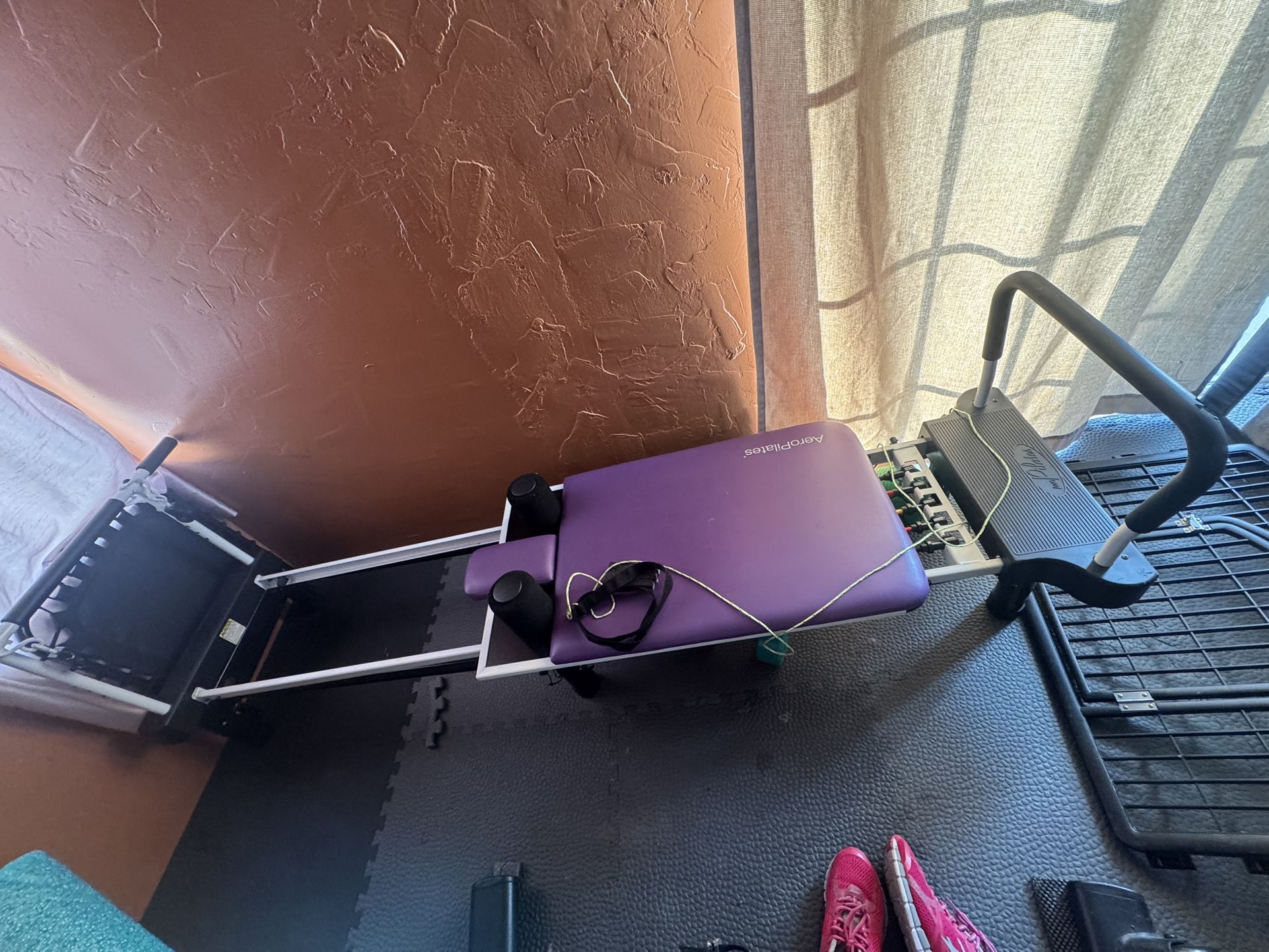 Aeropilates machine. Works perfectly and is in really good condition. It comes without the hand held resistant bands. It’s about 6 feet long, maybe a little less.Asking for 100 OBO.
