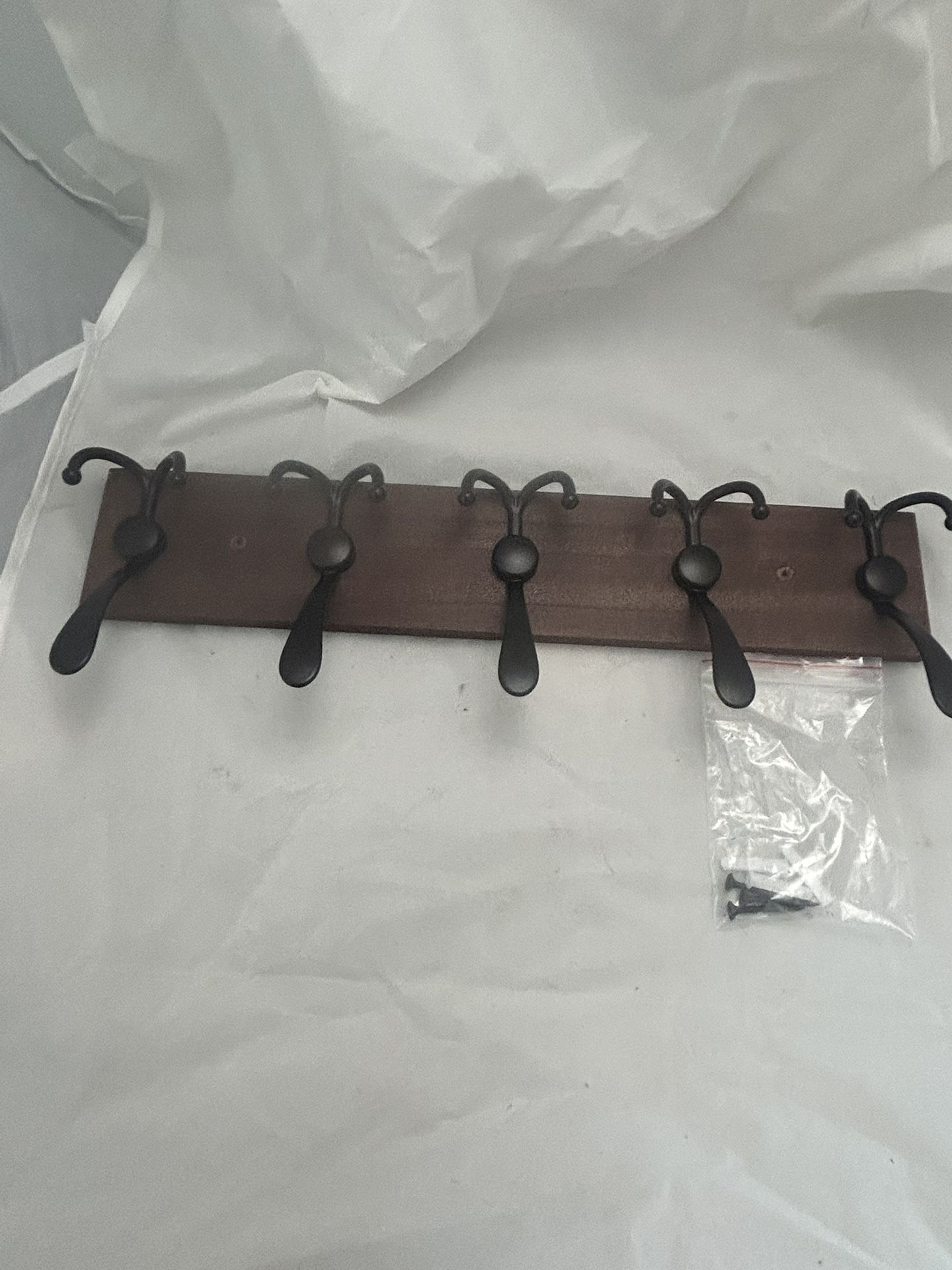 Im selling my Rustic Brown 32.2" Large Wall-Mounted Coat Rack with 8 Black Metal Triple Hooks - Pine Wood, Easy Installation for Jackets, Hats, and Coats, Coat Hanger for Wall It’s brand new I only opened the box Good condition ready to set up Firm on the price and cash only