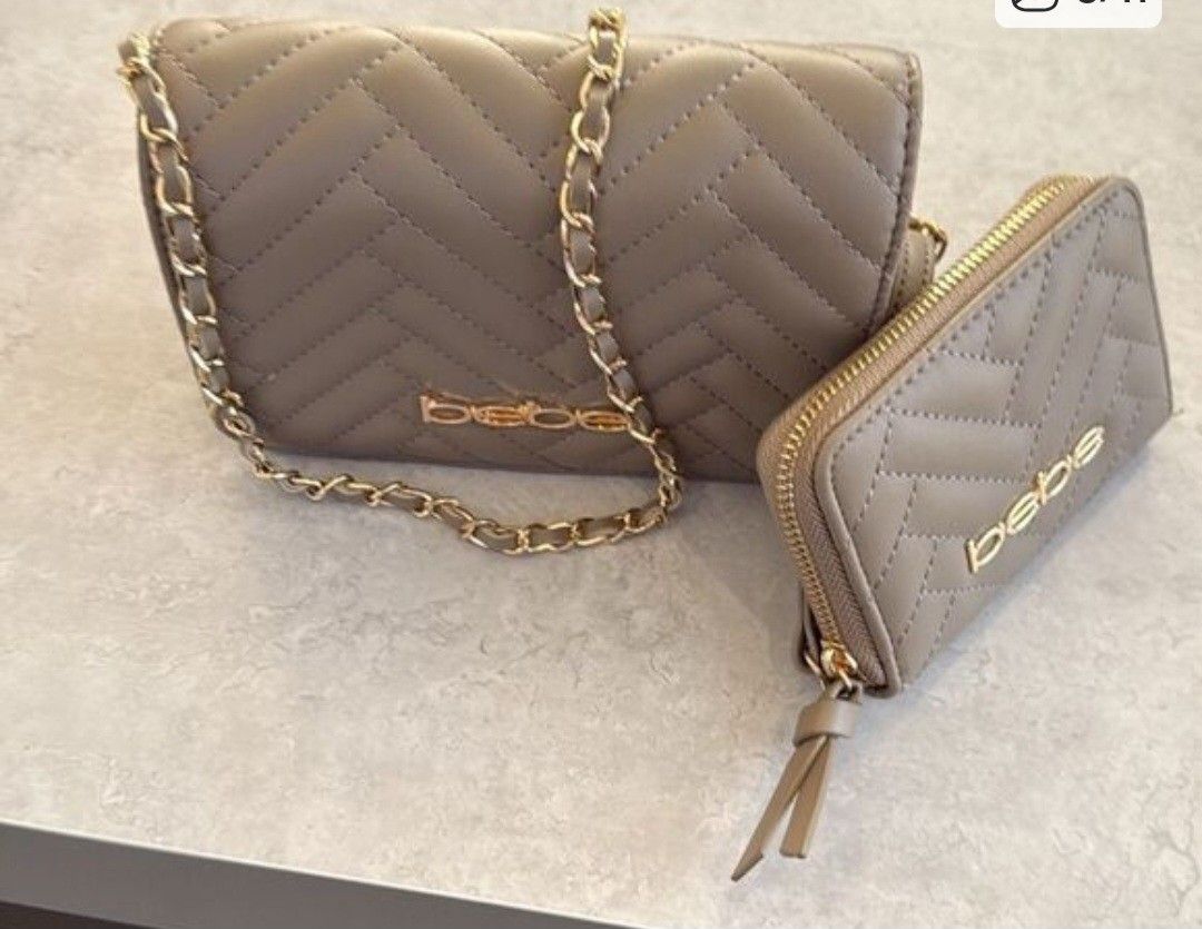 BEBE crossbody Wallet SET in Taupe Color