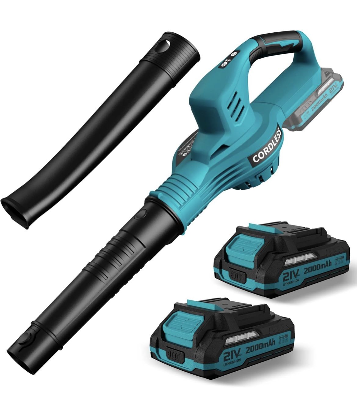 Leaf Blower Cordless - 21V Powerful Electric Leaf Blower with 2 Batteries and Charger, 2 Speed Modes, 2.0Ah Lightweight Battery Powered Leaf Blowers for Lawn Care, Patio, Dust, Blowing Leaves