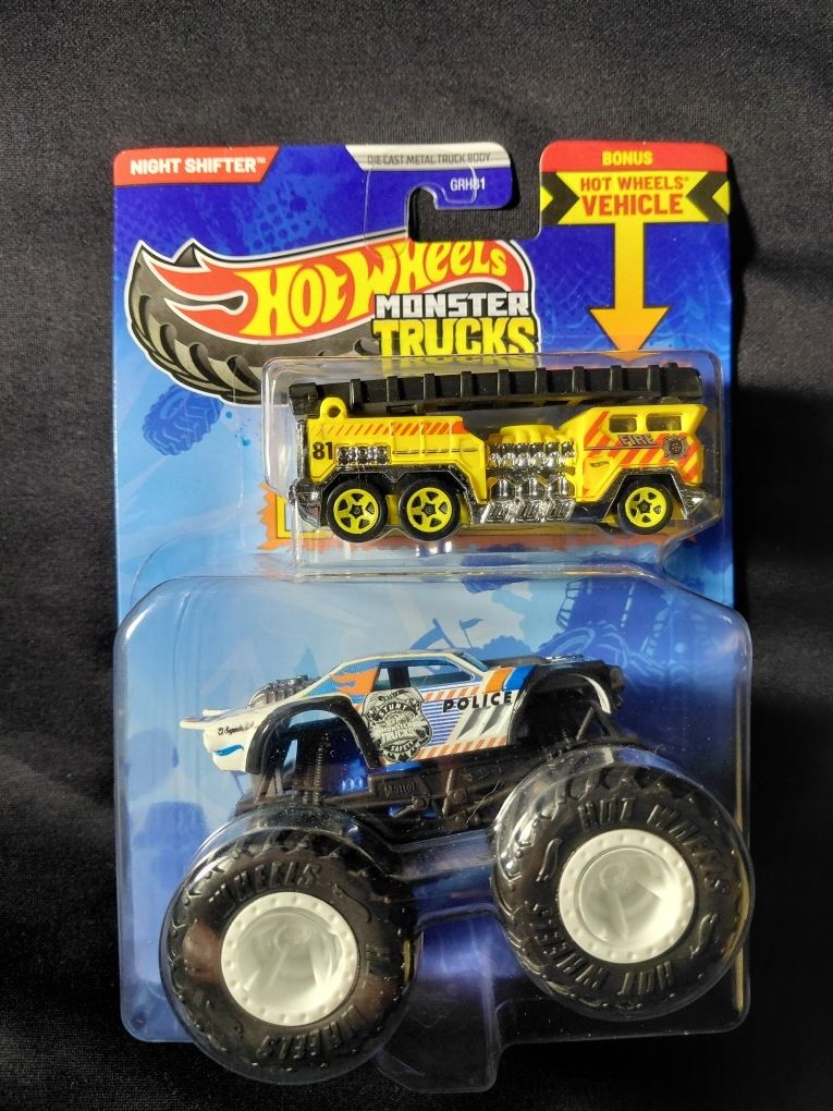 New in box, Hotwheels night shifter monster truck with 5 alarm fire engine car. Price includes delivery to the greater Phoenix area. Questions welcomed.
