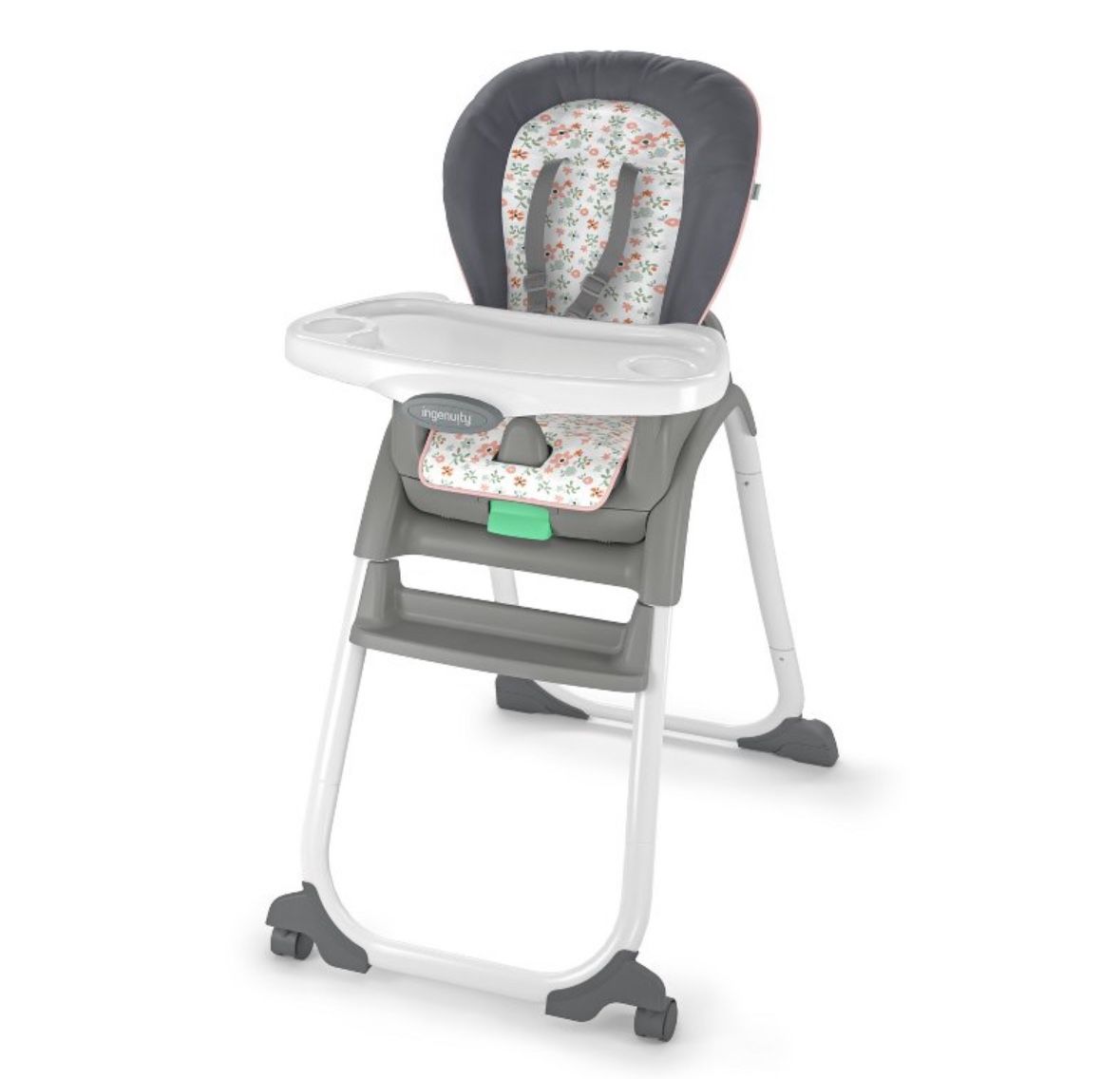 - easy to clean! - features six modes you can change as baby grows - converts to high chair to booster to toddler seat! comes with all attachments including two different table adjustments, which u can change to your liking, as well as the straps to strap your baby in, the foot rest, and the washable cushion. condition is good, and will be sold clean.
