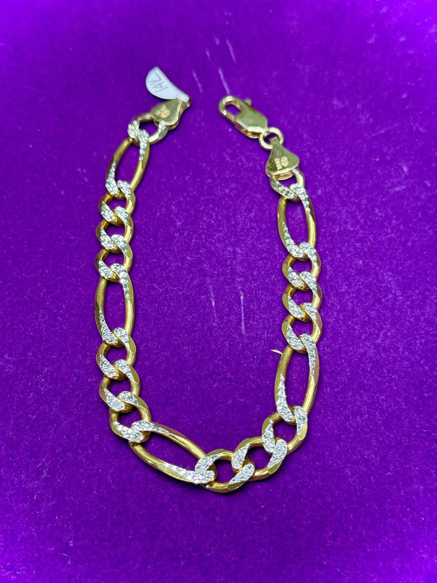 14K Gold Figaro Bracelet (Solid) Width: 8.5mm Length: 9 inches Quality: Brand New