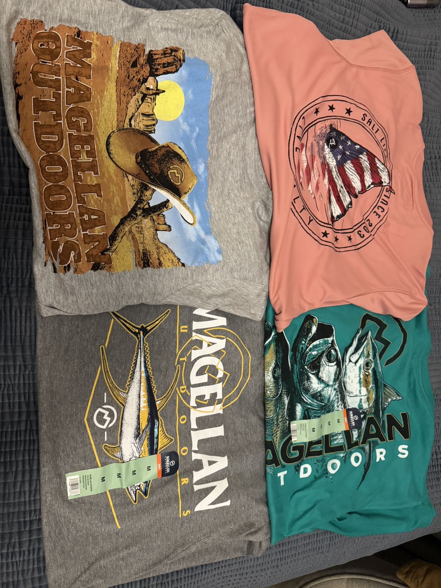•3 Short Sleeved Magellan Tee Shirts(2 Grays 1 Turquoise color) •1 Long Sleeve Salt Life Shirt (Pink Salmon Color) •Brand NEW never worn •All size MEDIUM
