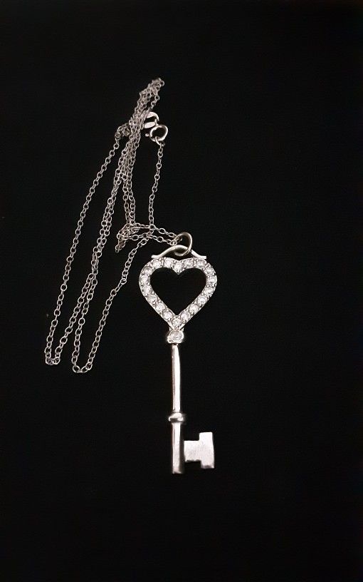 DIAMOND STERLING SILVER KEY TO THE HEART CHARM AND NECKLACE