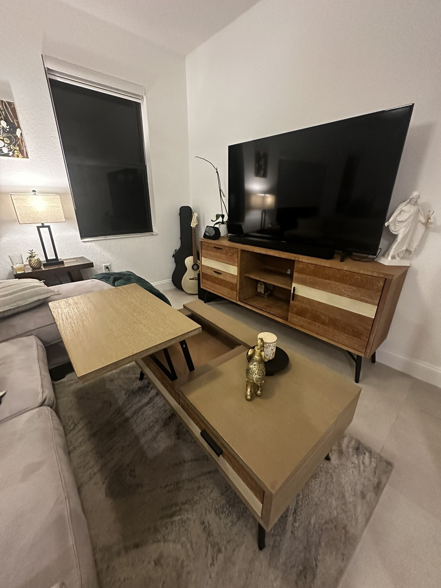 Like new coffee table and console. Sold as a set. We paid $1016 for both.
