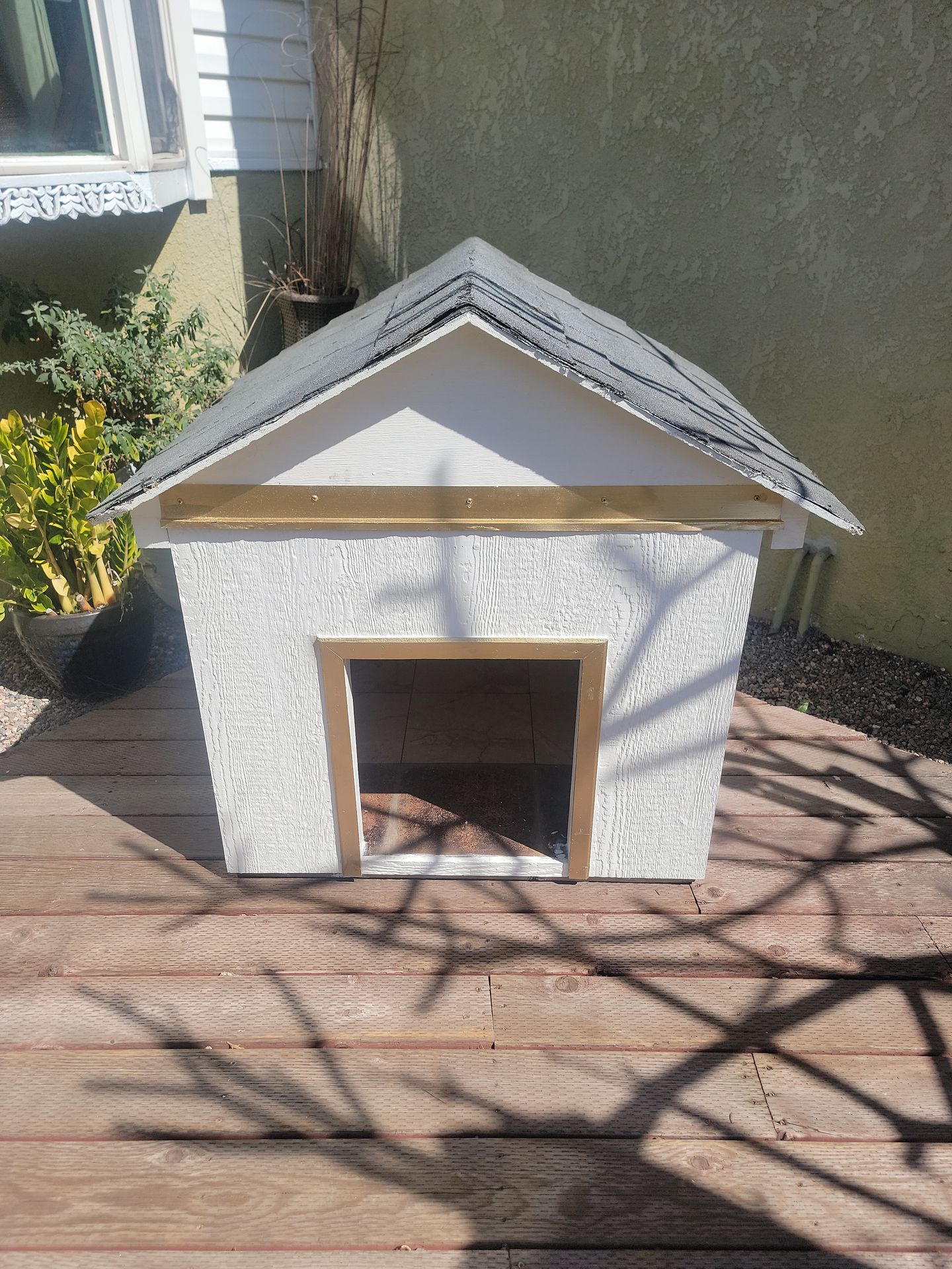 Repainted and cleaned up custom dog house. Great for rany days. Thw price will increase as I add more to it. By Saturday it will be $150 as I am adding trim. Then $200 when I tile the flfloor. $500 if I put a flat-screen in it.