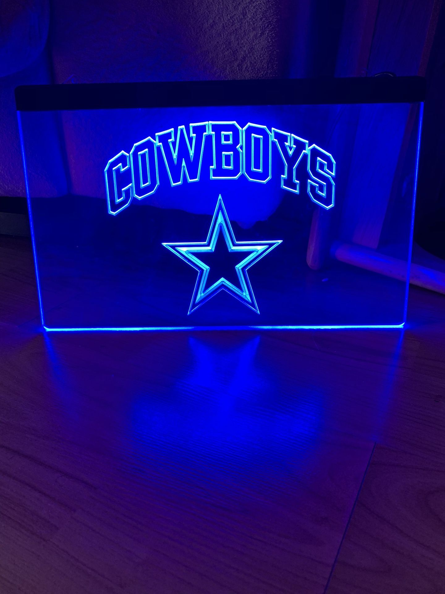 DALLAS COWBOYS LED Neon Sign - 3D Engraving - Quality clear acrylic plastic and lighting - Durable metal chain to hang on wall - input power AC 100-240V - Output power 12V - Great for bedroom, game room or any room - Size 8x12