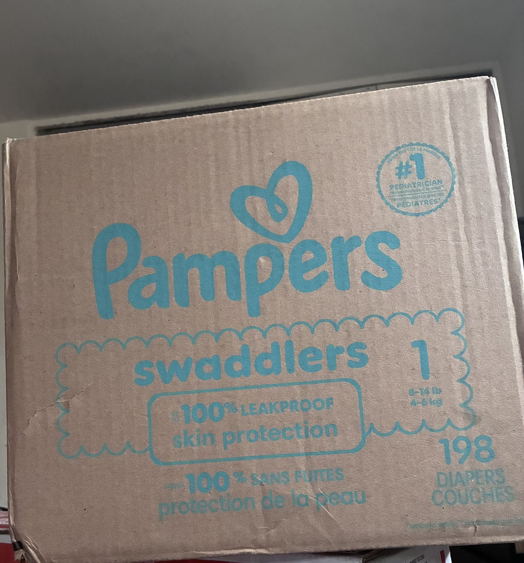 Brand new pampers swaddles size 1 Our baby has out grown these Have big box of swaddles 198 ct SIZE 1 š šššāļøāļøš And 2 bags of newborn diapers baby dry 1 bag is open with only 2-3 out of it free š 45$ obo
