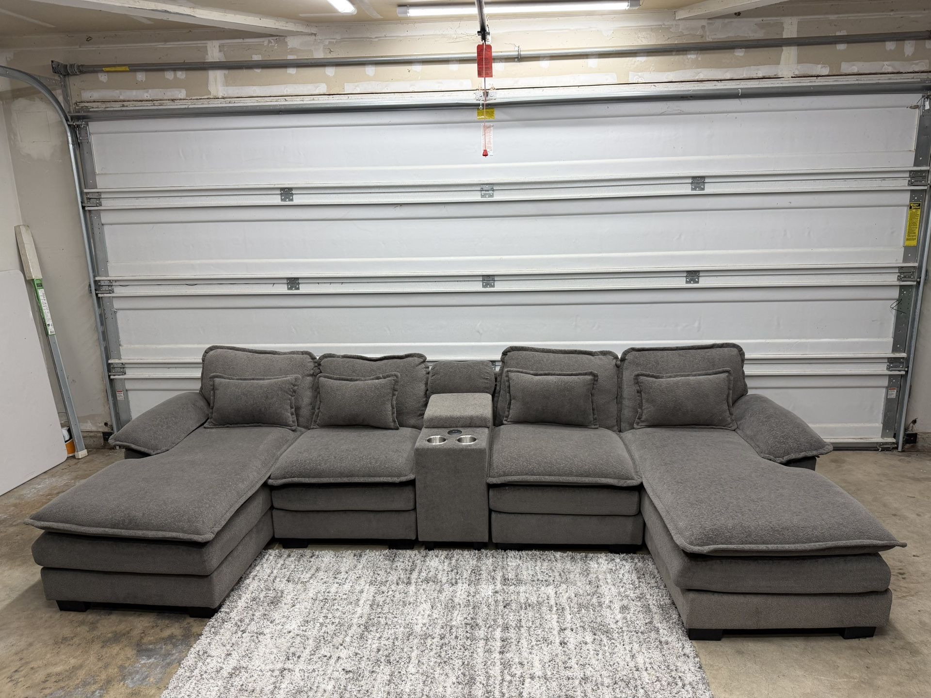 In great condition! Less than 7 months old. Pet free and smoke free. No rips or stains. Has center with usb to charge your electronics-storage and cup holders. Very comfortable couches.