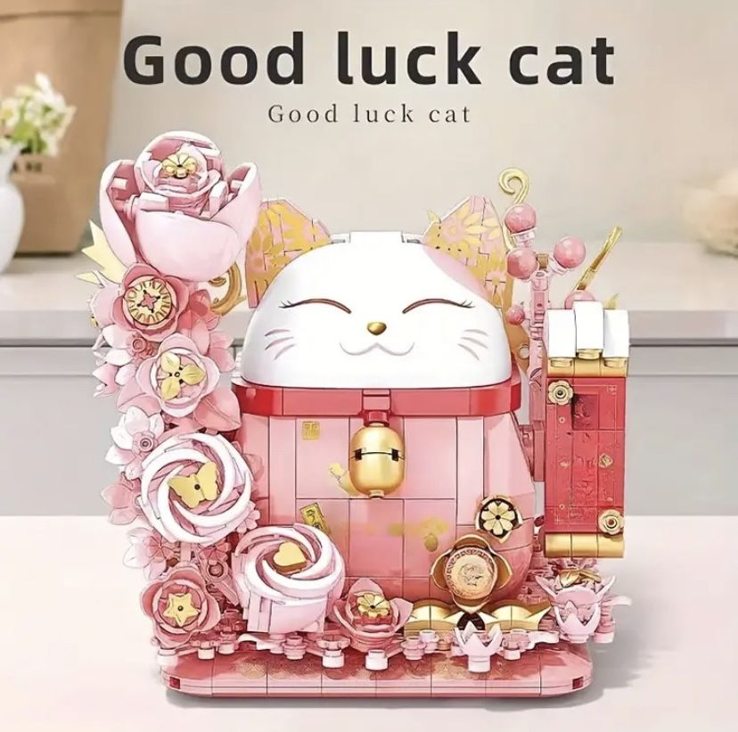 Fortune Lucky Cat Building Block - Pink 868 pcs