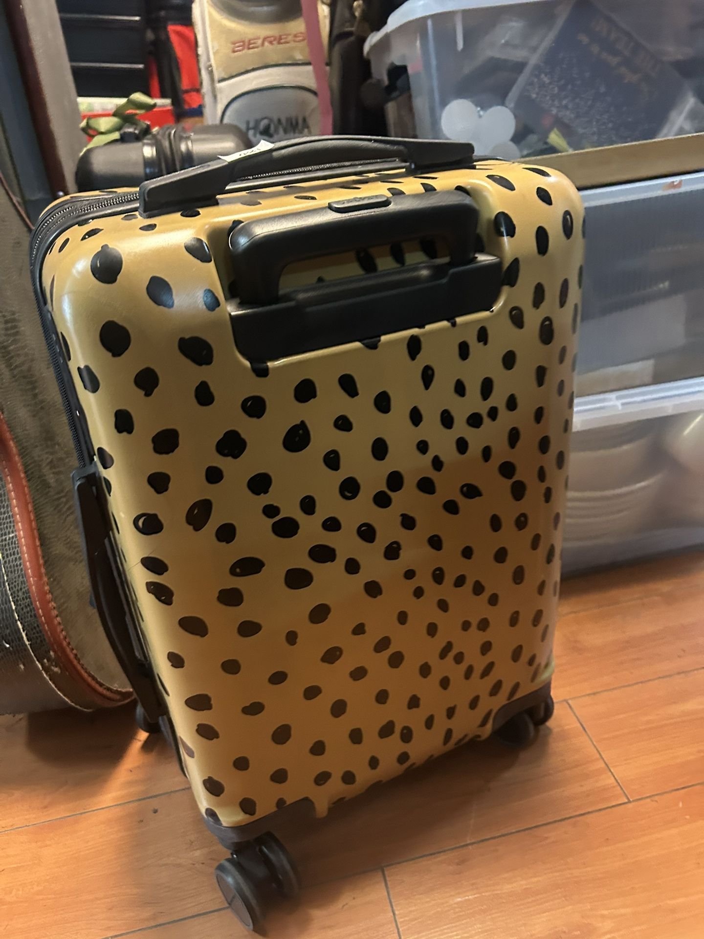 Calpak Chipp 2-piece hardshell spinner suitcase set in a leopard