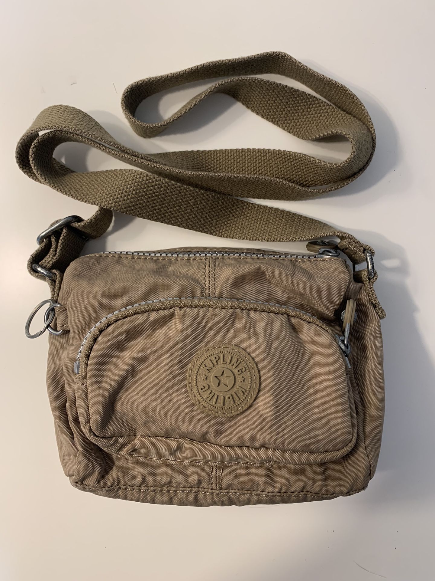 Kipling Simple Portable Square Shoulder Bag, Zipper All-match Crossbody Bag, Solid Color Purse Size: 6in x 4in x 2in Color: light brown