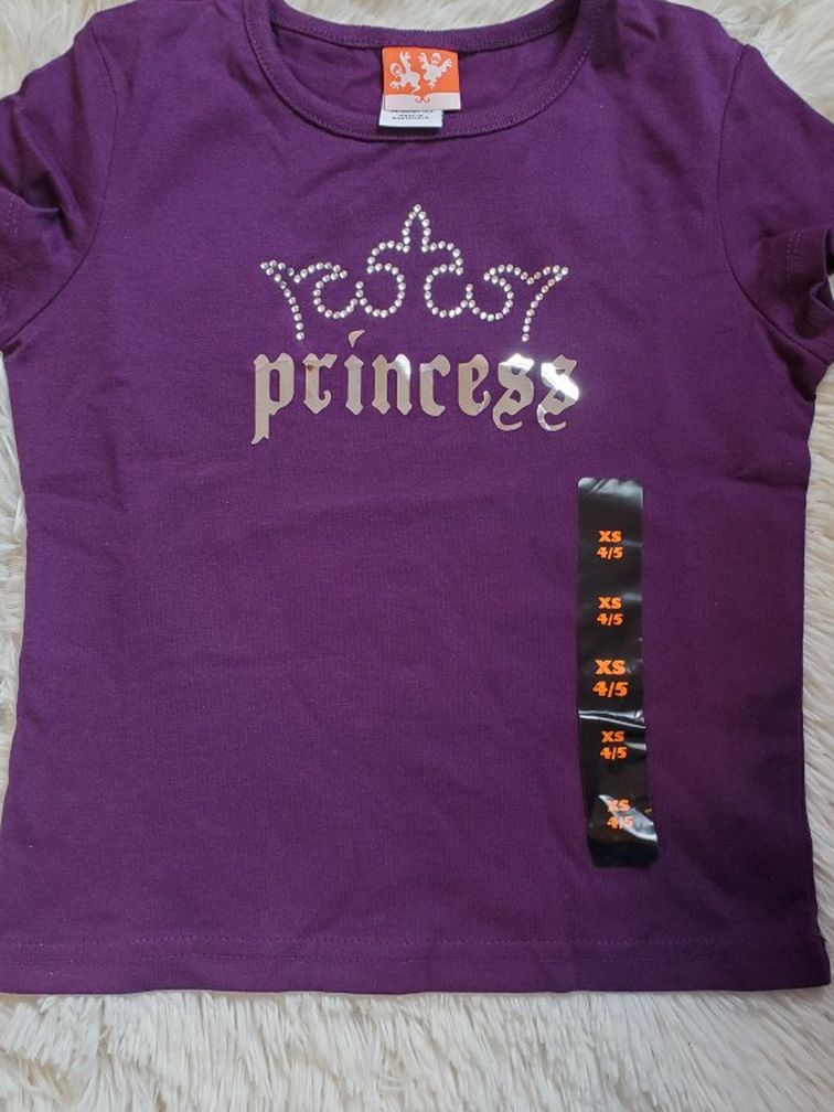Girls Size XS (4/5) Purple Princess/Tiara Shirt - New. $10.00. Pickup in Clinton, MA. Due to camera/flash/monitors, etc. Color of actual item may not be exactly as shown in photos. Comes from a smoke free/pet free home