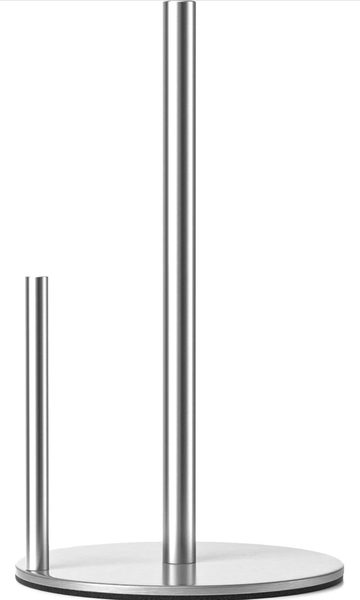 Paper Towel Holder Silver, Premium Stainless Steel Kitchen Roll Dispenser, Countertop Roll Organizer with Weighted Base