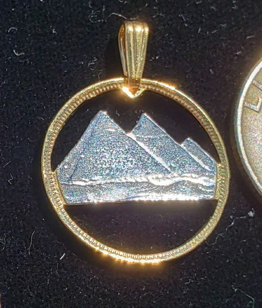 This is for only 1 pendent. This is a gorgeous Egyptian coin pendant of Pyramids from a 1984 2 piastress coin These are handcrafted using silver and gold plating to make a gorgeous pendant for a necklace . The front side is silver and gold and back is gold plated. Very pretty pieces. You can see their sizes by comparing it to the quarter shown in pics. Lots of other countries, zodiac signs and animals available Item located in Gulf Harbors in New Port Richey. Can ship via PayPal for an additional 10 dollars to cover usps 7.95 shipping price with insurance and tracking then the additional PayPal fees. I relist my items all the time so if you see an item is unlisted please click on my profile pic to see if it actually currently available in a new listing.