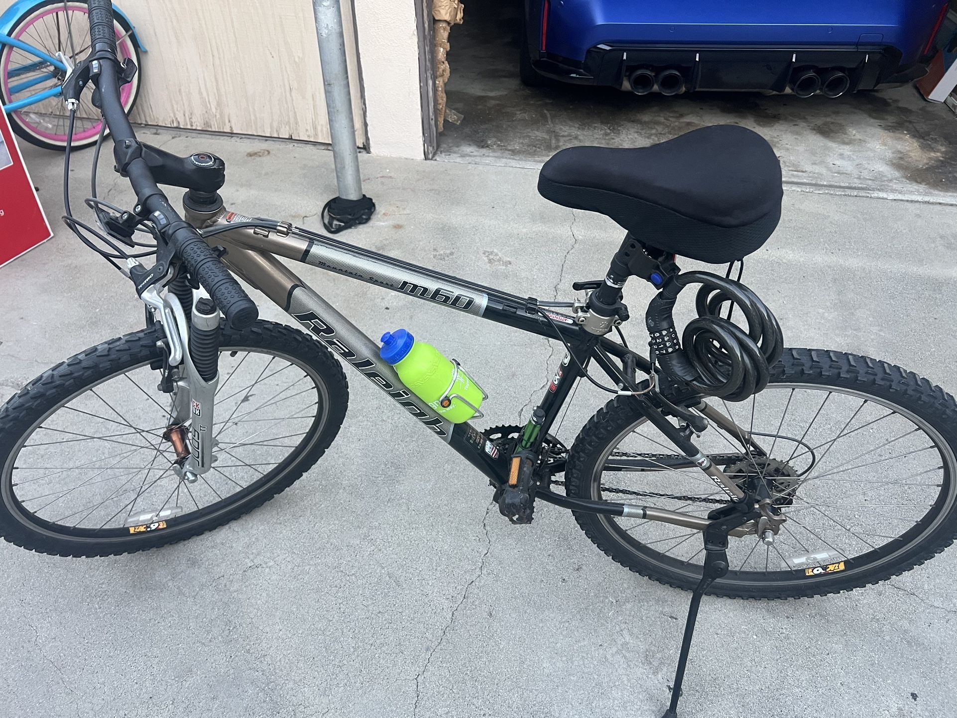 Raleigh Atomic 13 m60 Aluminum md 18 inch w front july shox , upgraded tubing and tires with extra cushion seat for comfort . This bike is very well maintained looks almost Brand New! Comes w all the accessories as seen on the pictures. $325 obo , price just reduced ! please no low ballers, you are buying like brand new!