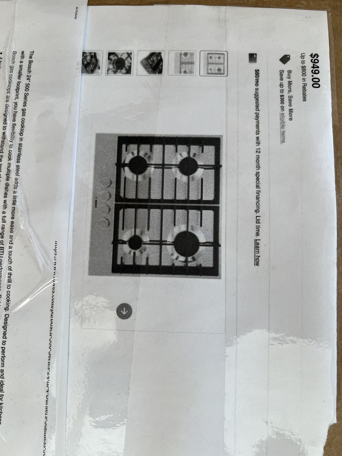 24” bosch Gas cooktop. Brand new.