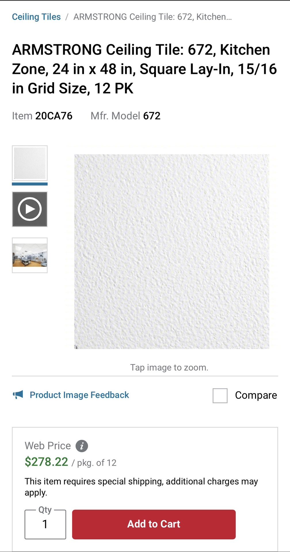 New Armstrong Kitchen Zone Ceiling Drop Panels for Commercial Kitchen. Washable. 24”x48”. 1 Box left. (12 panels)