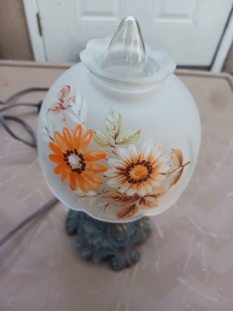 Vintage L&LWMC 1973 Table lamp Tiffany style glass and brass table lamp 9" Tall