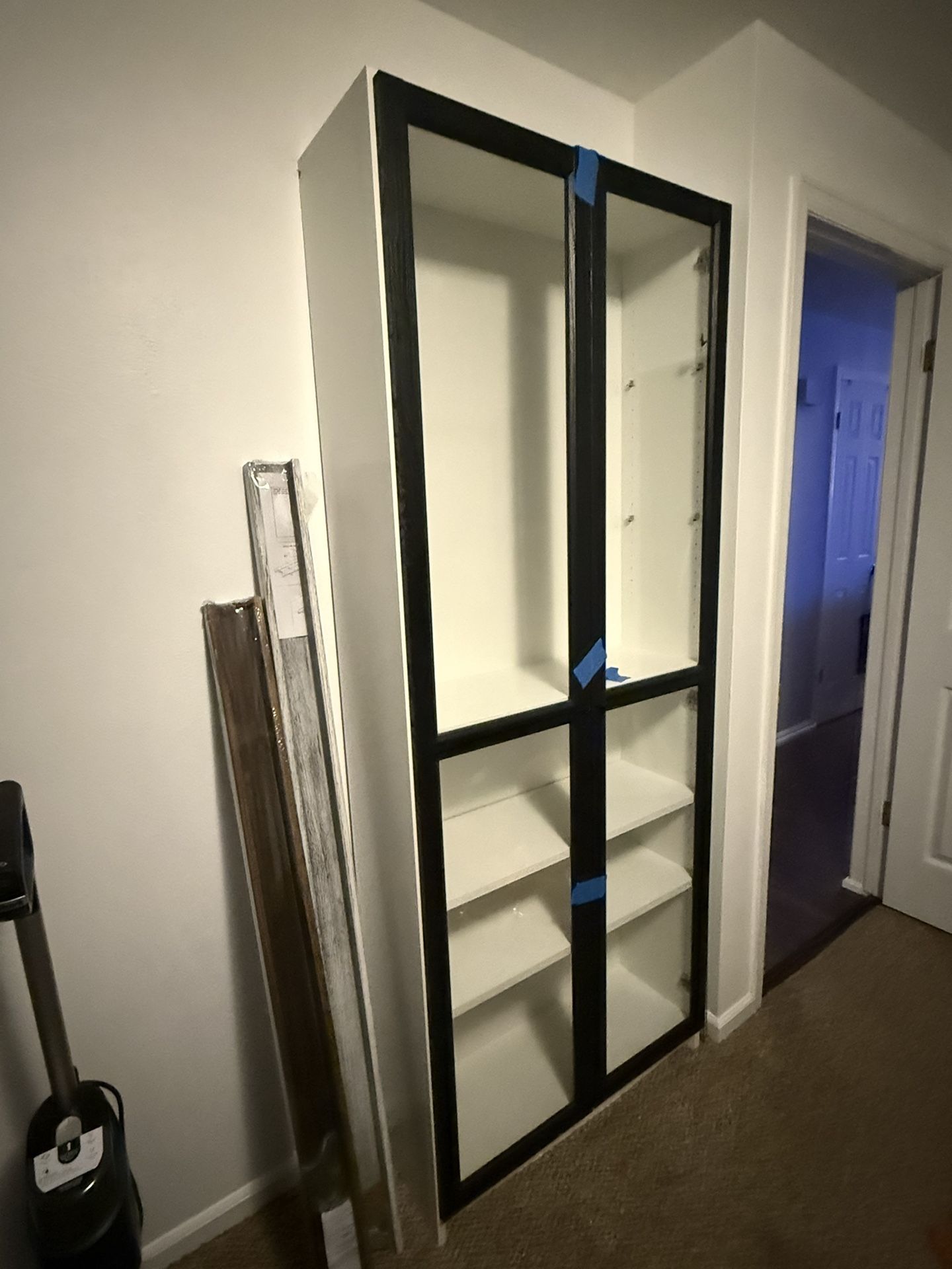 12x31x79 dimensions. 2 glass shelves and 2 solid. White shelf black doors. Retails for $179 right now, can help load in Lakewood.
