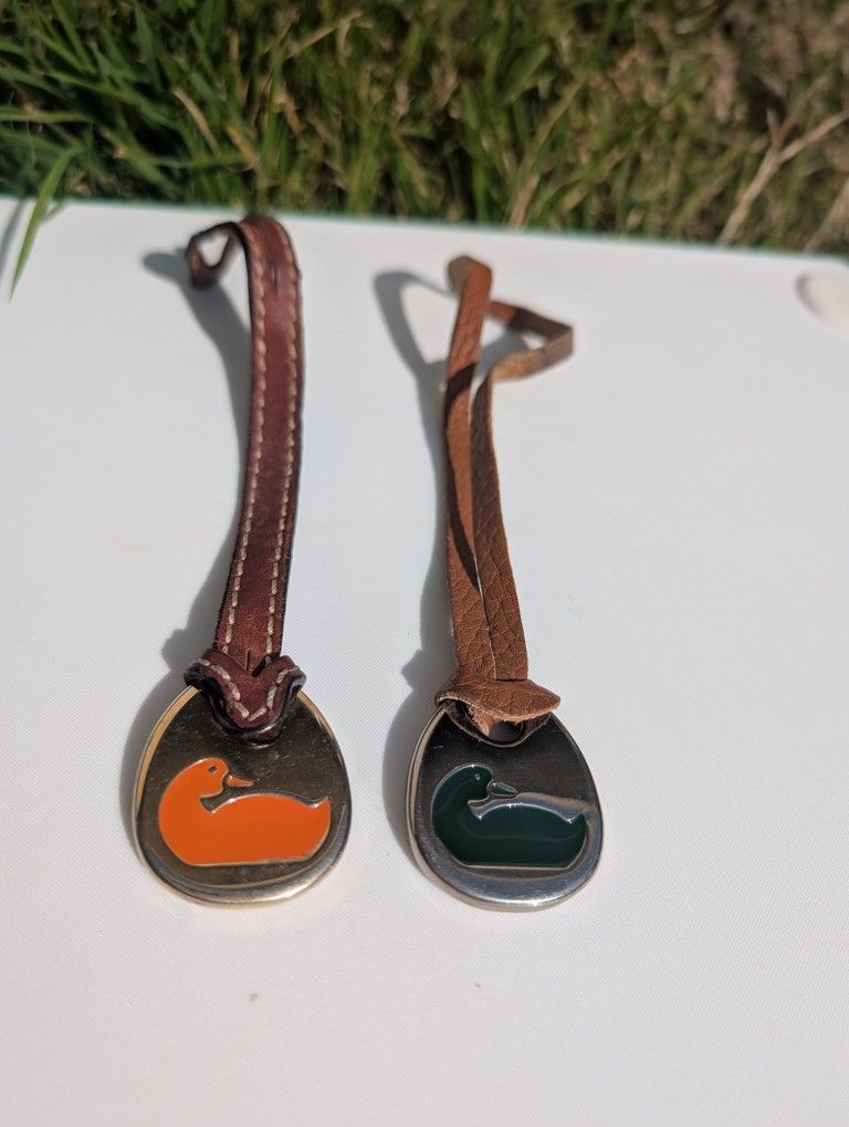 Two Dooney & Bourke Leather Keychain Vintage Bag Charm Orange & Green