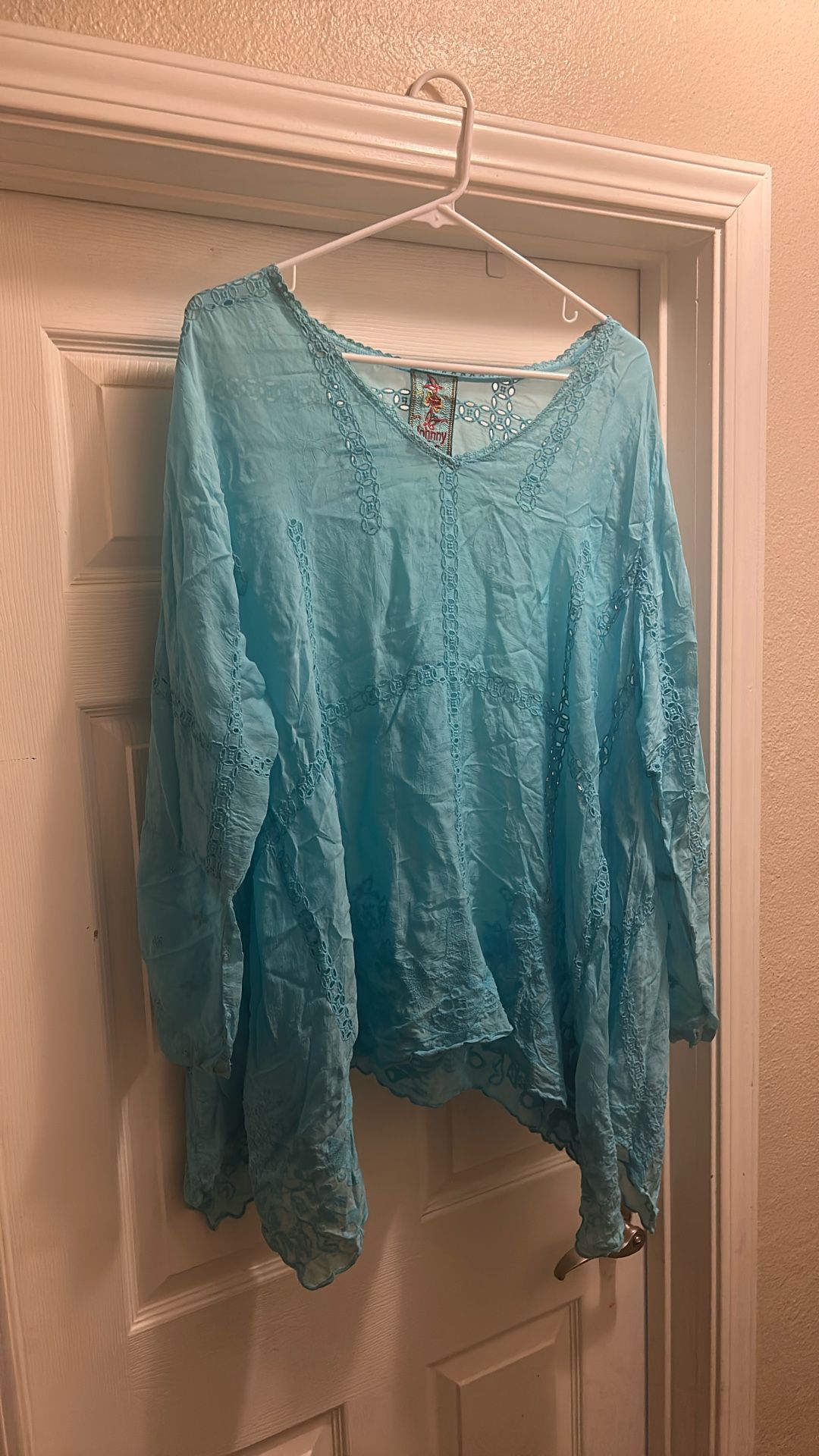 Brand: Johnny Was Size: 2XL Excellent condition Women’s Turquoise Eyelet Tunic