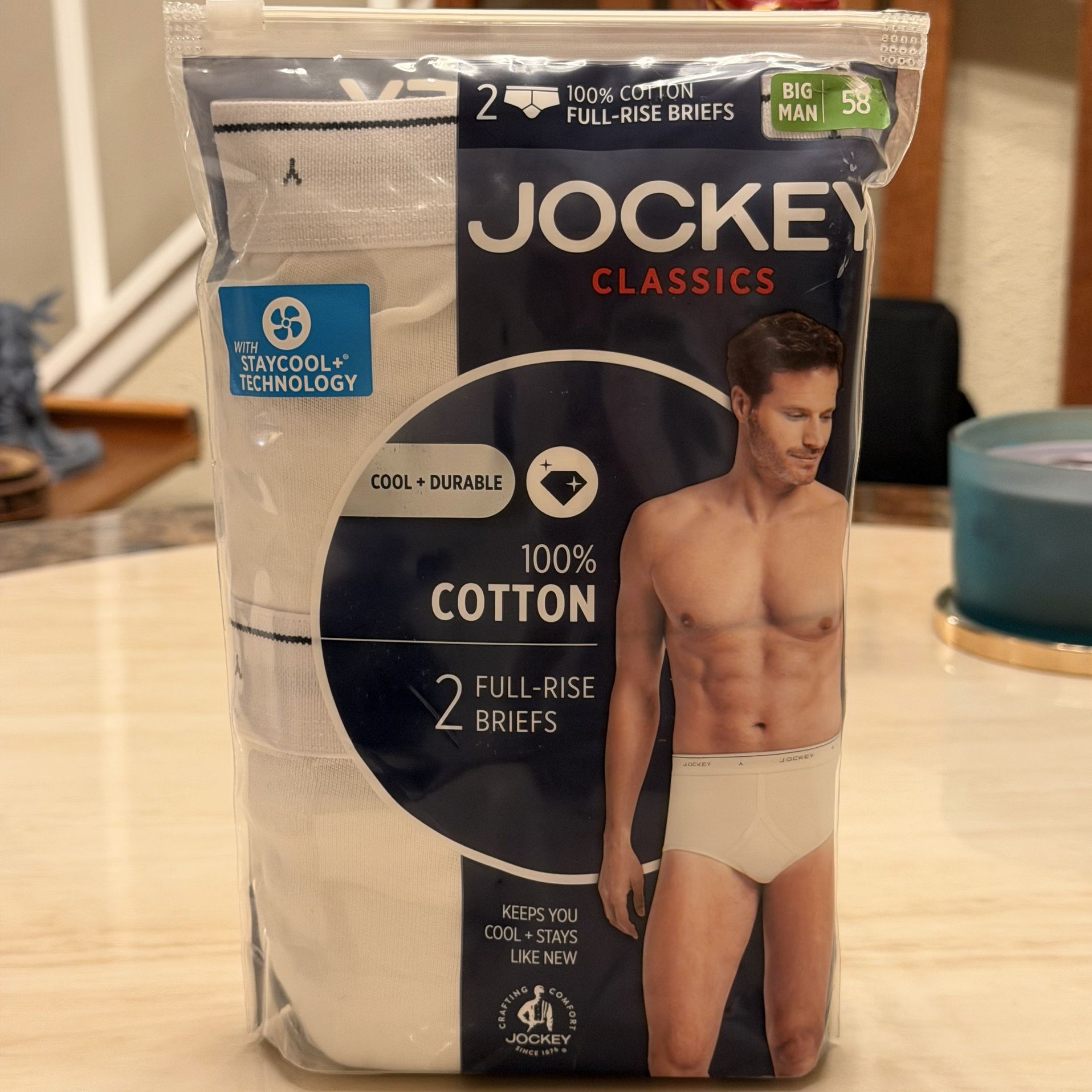 2-Briefs Jockey Big Man 58 Y-Front Fly Full-Rise Staycool+ StayNew White Cotton