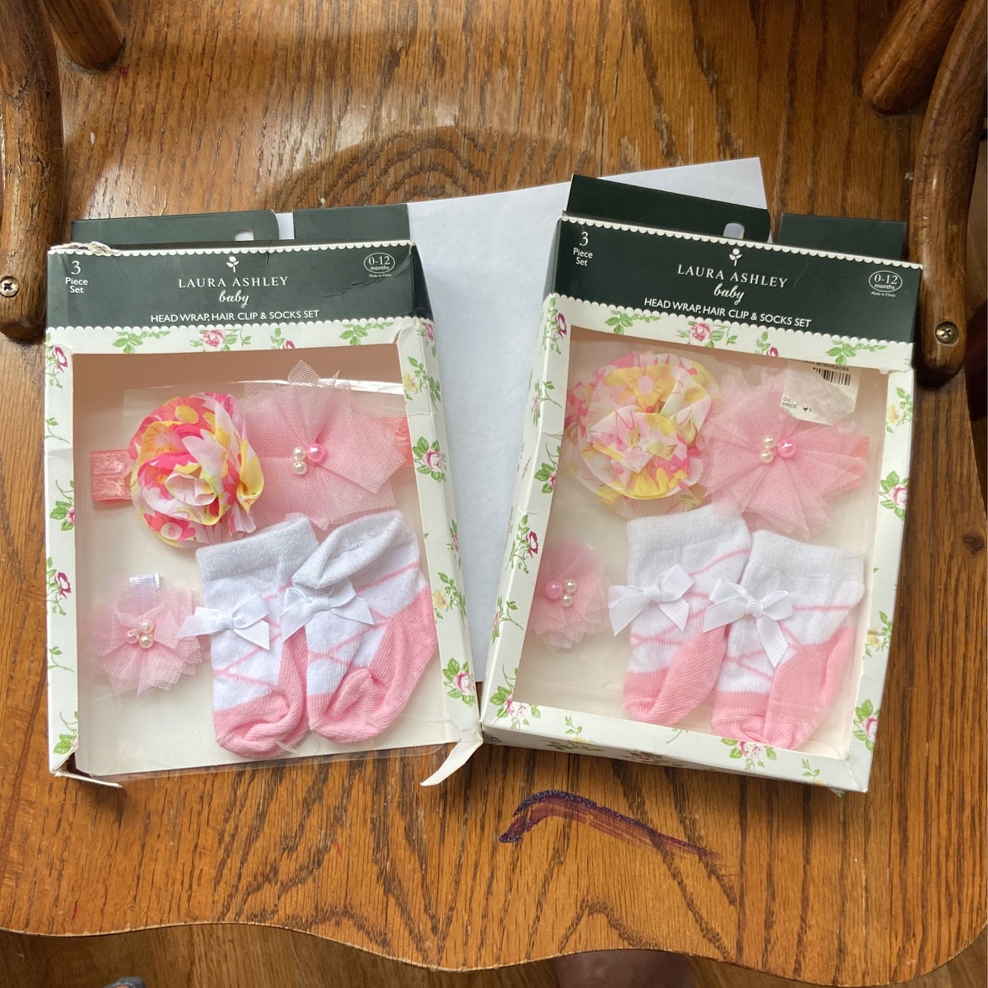 Laura Ashley Head Wrap,hair clip,& Sock Set