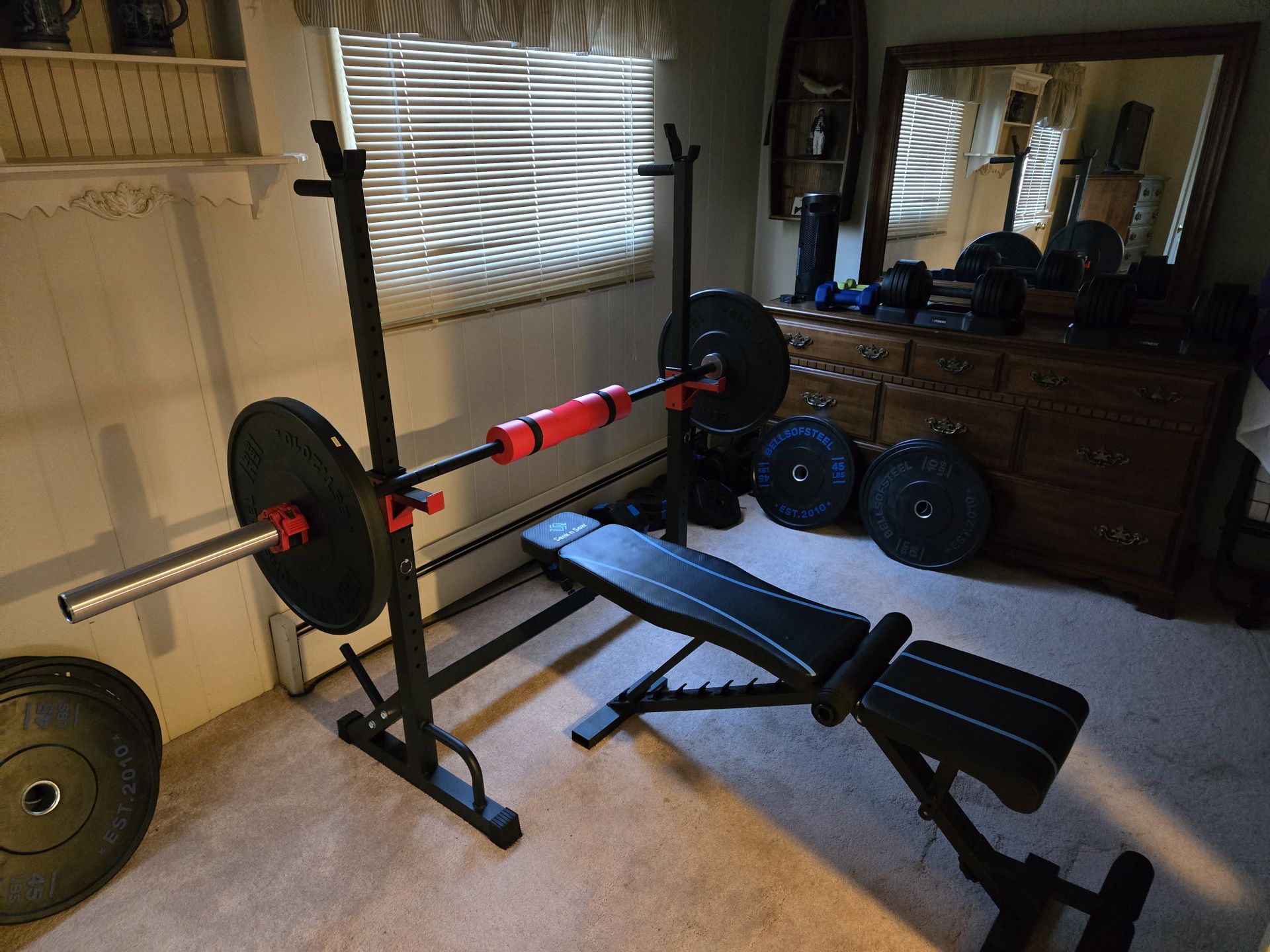 Bumper weight set with 260 lbs. 2x-45lbs 2x-35lbs 2x-25lbs 2x-15lbs 2x-10lbs 1x-45lbs Olympic bar 1x-incline bench 1x-squat rack