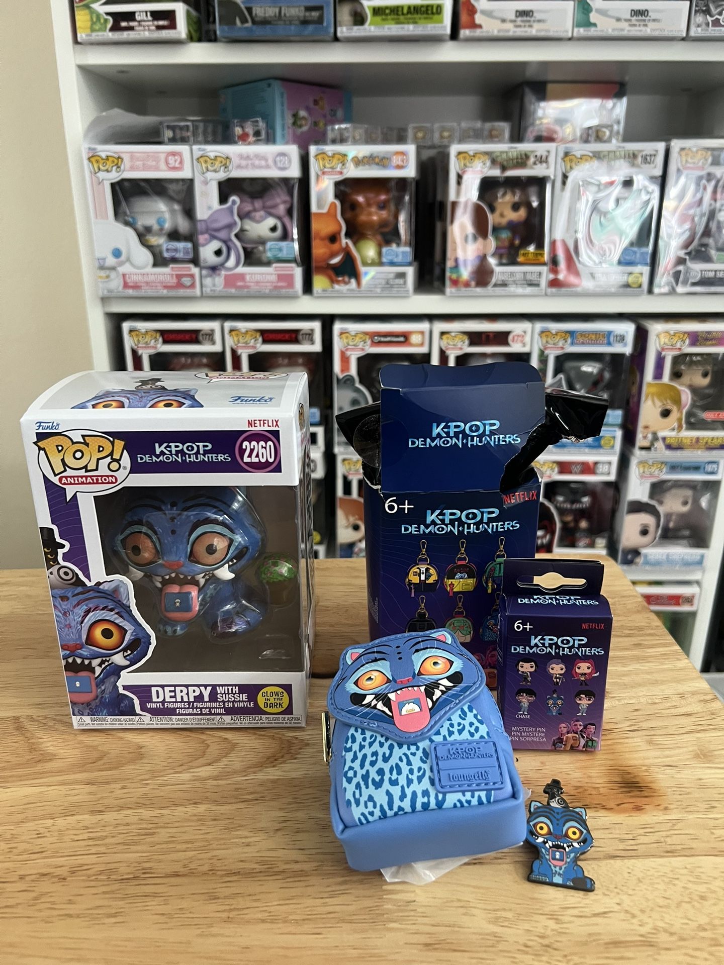 Derpy Loungefly Bag Charm Keychain, Pin & Funko Pop #2260 K-Pop Demon Hunters