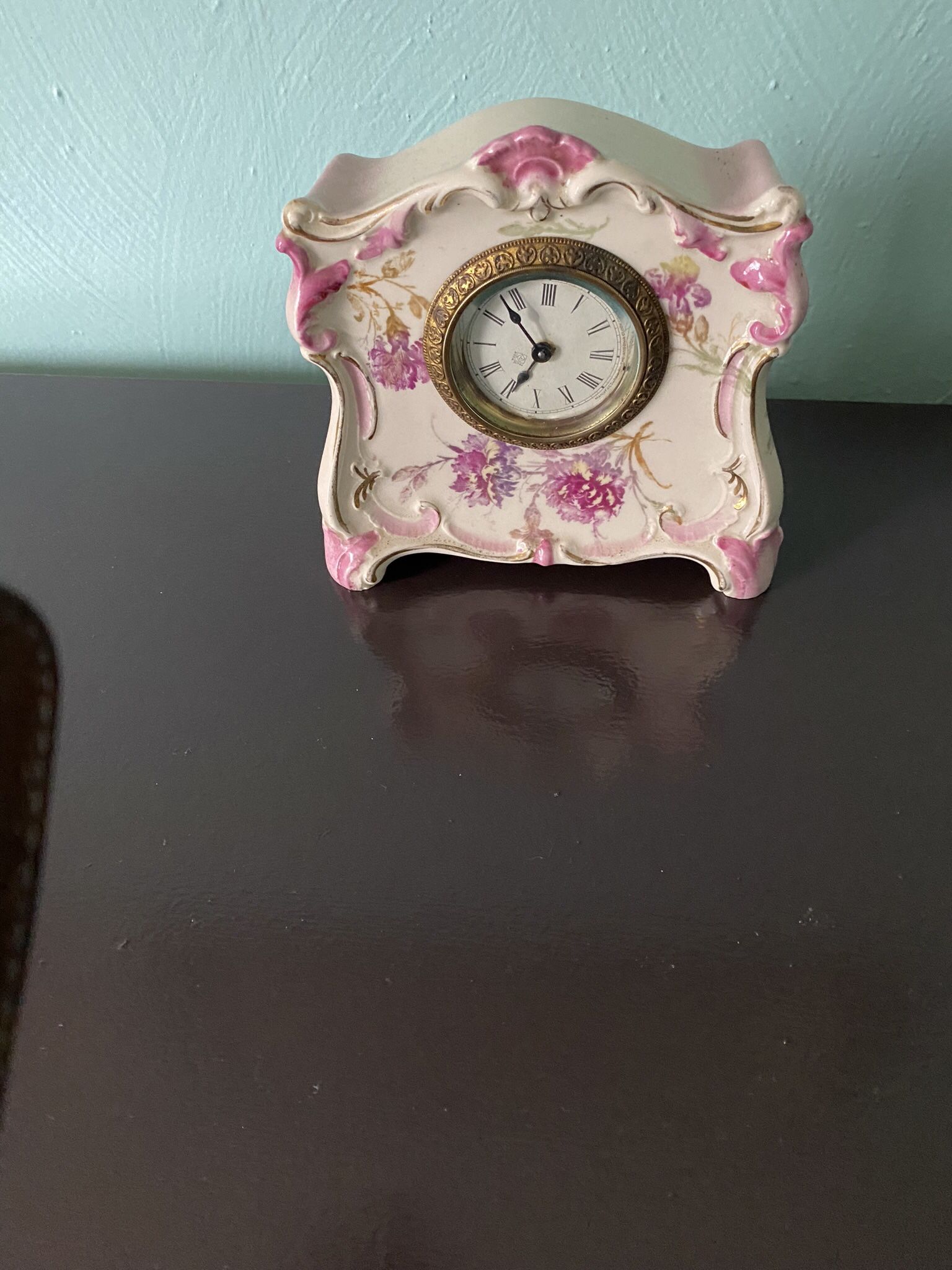 Beautiful Small Antique Porcelain Ansonia Wind Up Mantle Clock. Non Working. Pretty Clock. Made in Germany