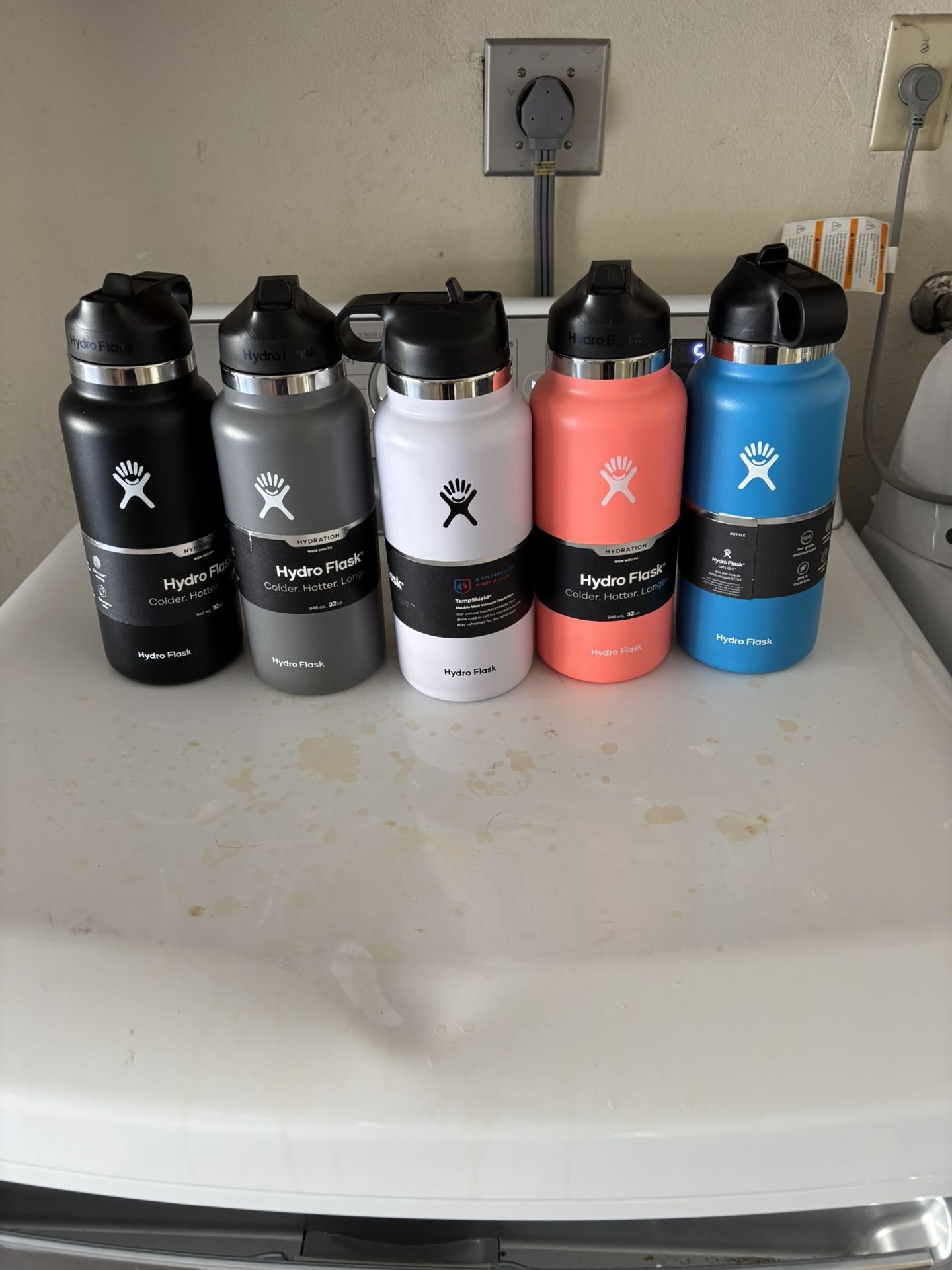 Hi I have brand new 32 oz hydro flask. The colors I have: Black x3 Bubblegum x3 Blue x2 Grey x13 White x1