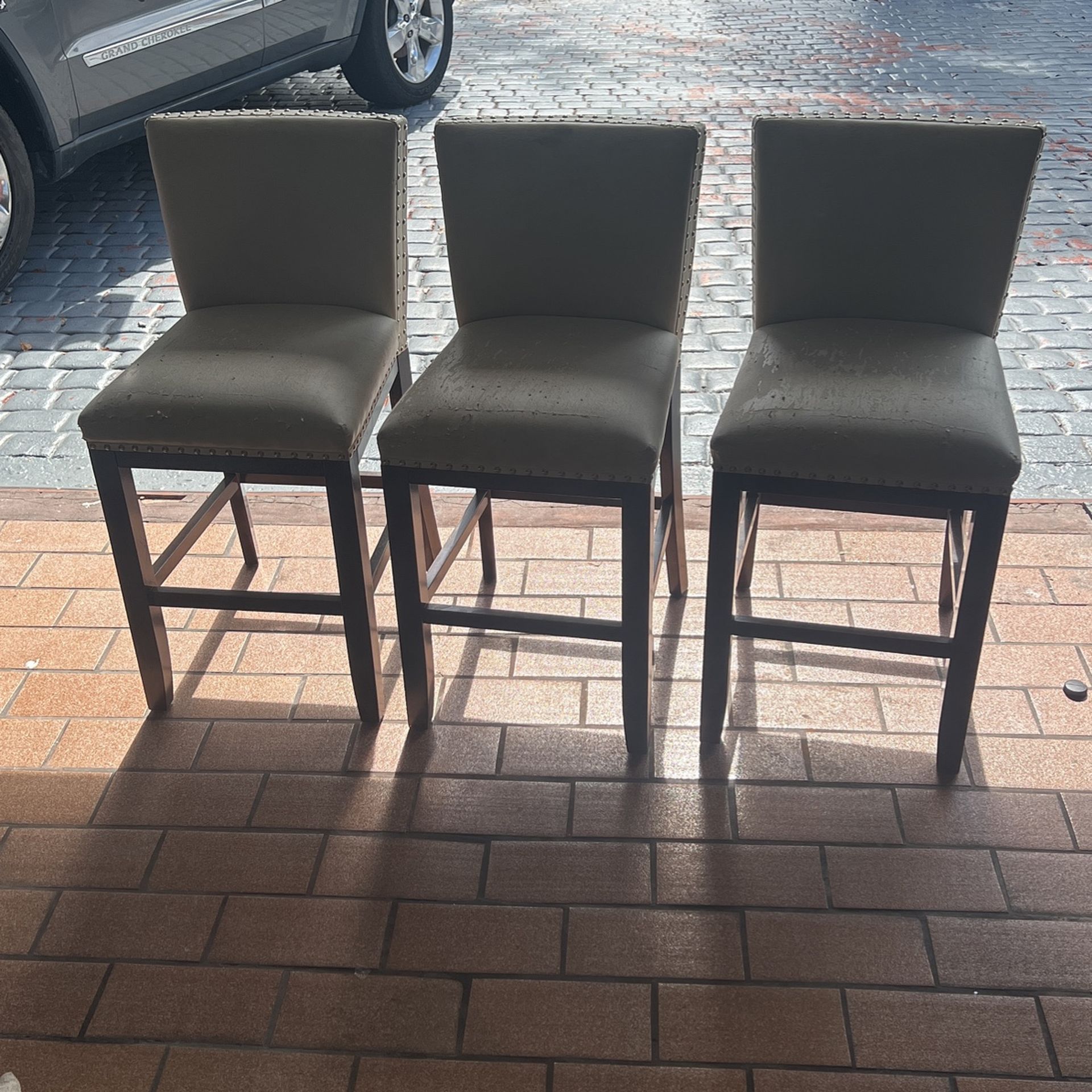 Bar stool chairs color white good condition comfortable chair is peeling but wood is still good and steady 2 feet tall & and a foot and a half wide 35 dollars a chair but if you want to buy them all 100