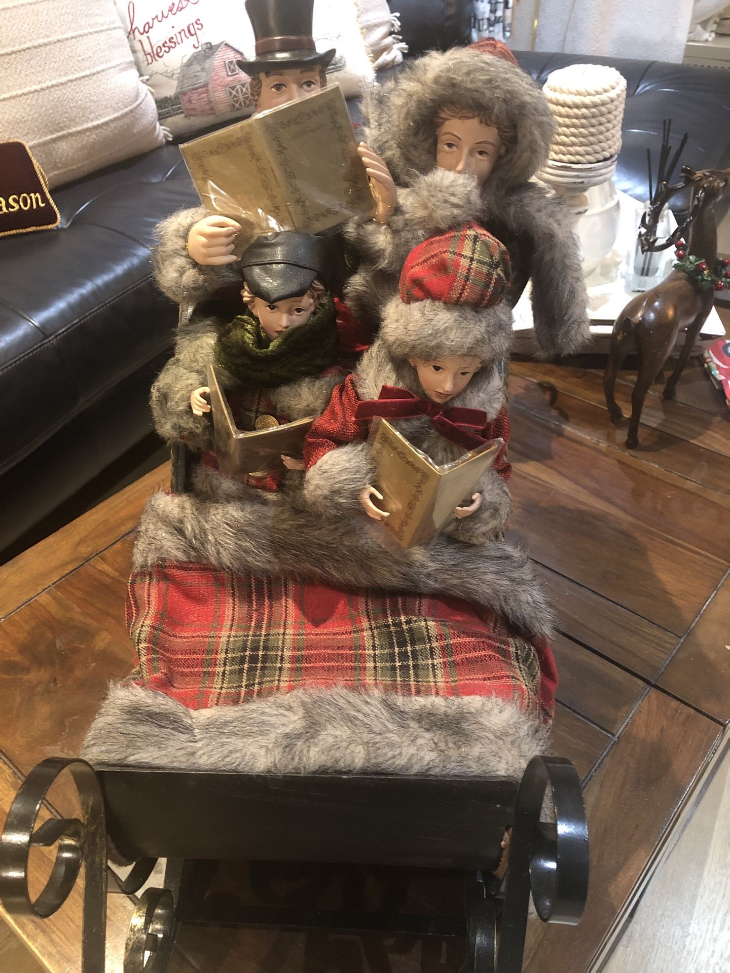Really good quality and condition. Carolers in sleigh for the holidays Length: 20” x Width 8” by 13”