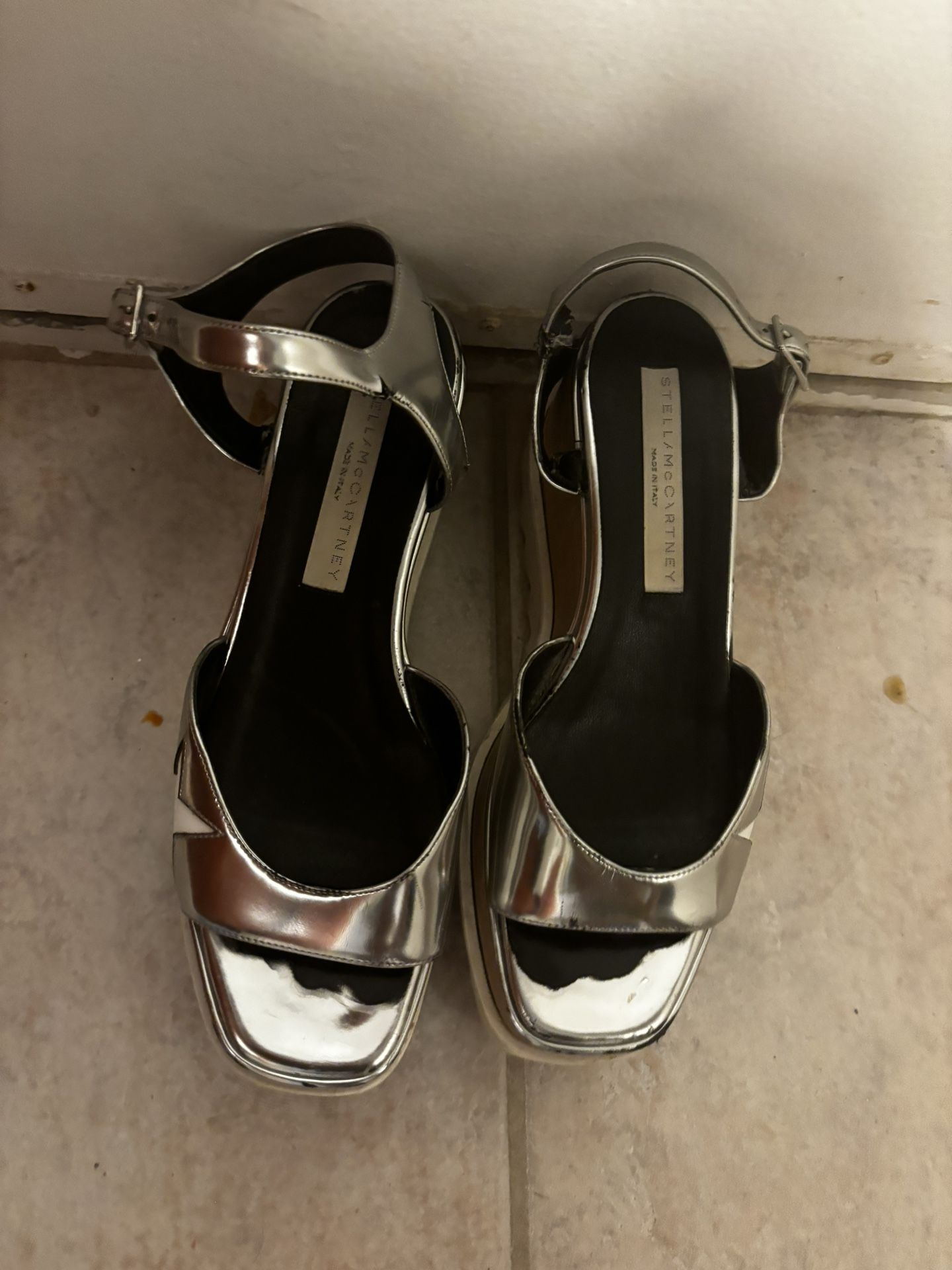Stella McCartney Elyse Sandals wedge dress shoes open toe platforms metallic