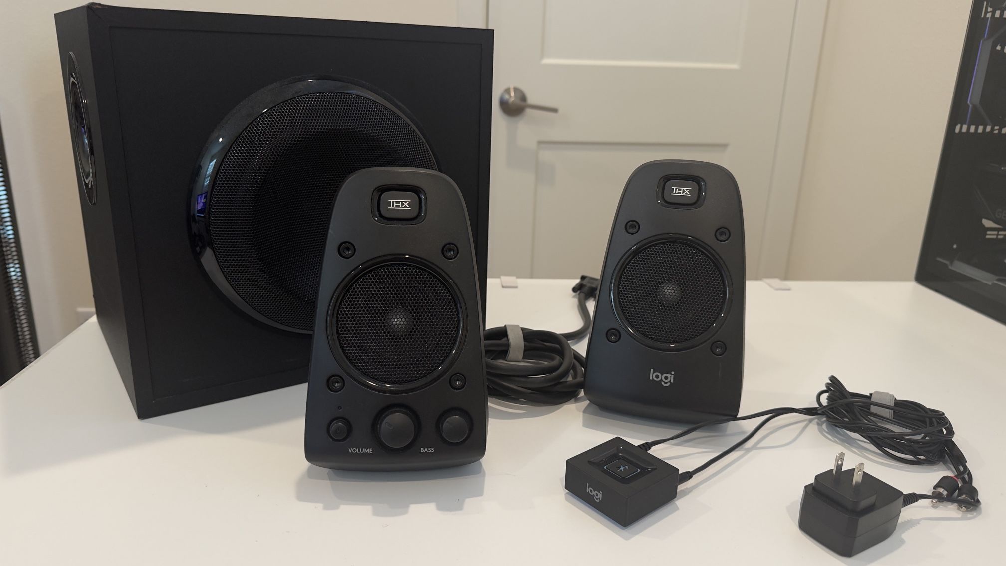 Excellent condition. THX-certified 2.1 speaker system brings your music, movies and games to life in immersive studio-quality audio; Satellites: 2 x 35 Watt.Mounting Type:Tabletop.Speakers maximum output power:400 watts.Waterproof : No RCA and 3.5 millimeter inputs make it easy to plug in up to 3 audio devices - your computer, iPod, game console, DVD player and more 2 satellite speakers and a powerful subwoofer deliver sound big enough to fill even large entertainment rooms.Please Note: Kindly refer the User Guide before use. Compatible with Television,Computer,Smartphone,Tablet,Music player,DVD player,Blu-ray player,PlayStation,Xbox,Wii. System Requirements: Works with any device with either a headphone jack (3.5 millimeter) or RCA input. 400 Watts Peak/200 Watts RMS power delivers amped audio from this 2.1 speaker system. Subwoofer-130 W. Dimensions( H x W x D)-Subwoofer-11.2 x 12.0 x 10.5 inches. Right Satellite-7.7 x 4.6 x 5.0 inches. Left Satellite-7.7 x 4.6 x 5.0 inches Bluetooth adapter: Multipoint Bluetooth connectivity: Simultaneously pair your smartphone and tablet and stream music from either one Easy pairing and automatic re pairing: Pair your device to the adapter once with a single button press and you're done Long range wireless: Stream music from up to 15 meters (50 feet) away from your speakers Works with most speakers: Plugs into any powered PC speakers, home stereo systems and A/V receivers using RCA or 3.5 mm jacks. This product is a receiver ONLY, not a transmitter.