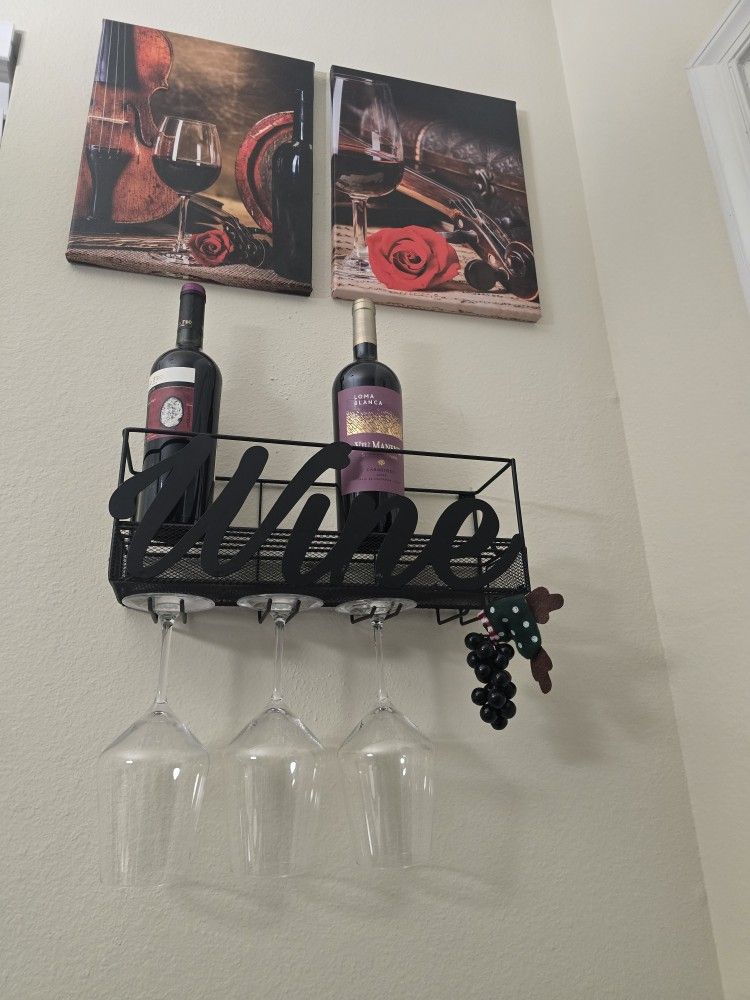 Wine Shelf With Holders For Wine Glasses