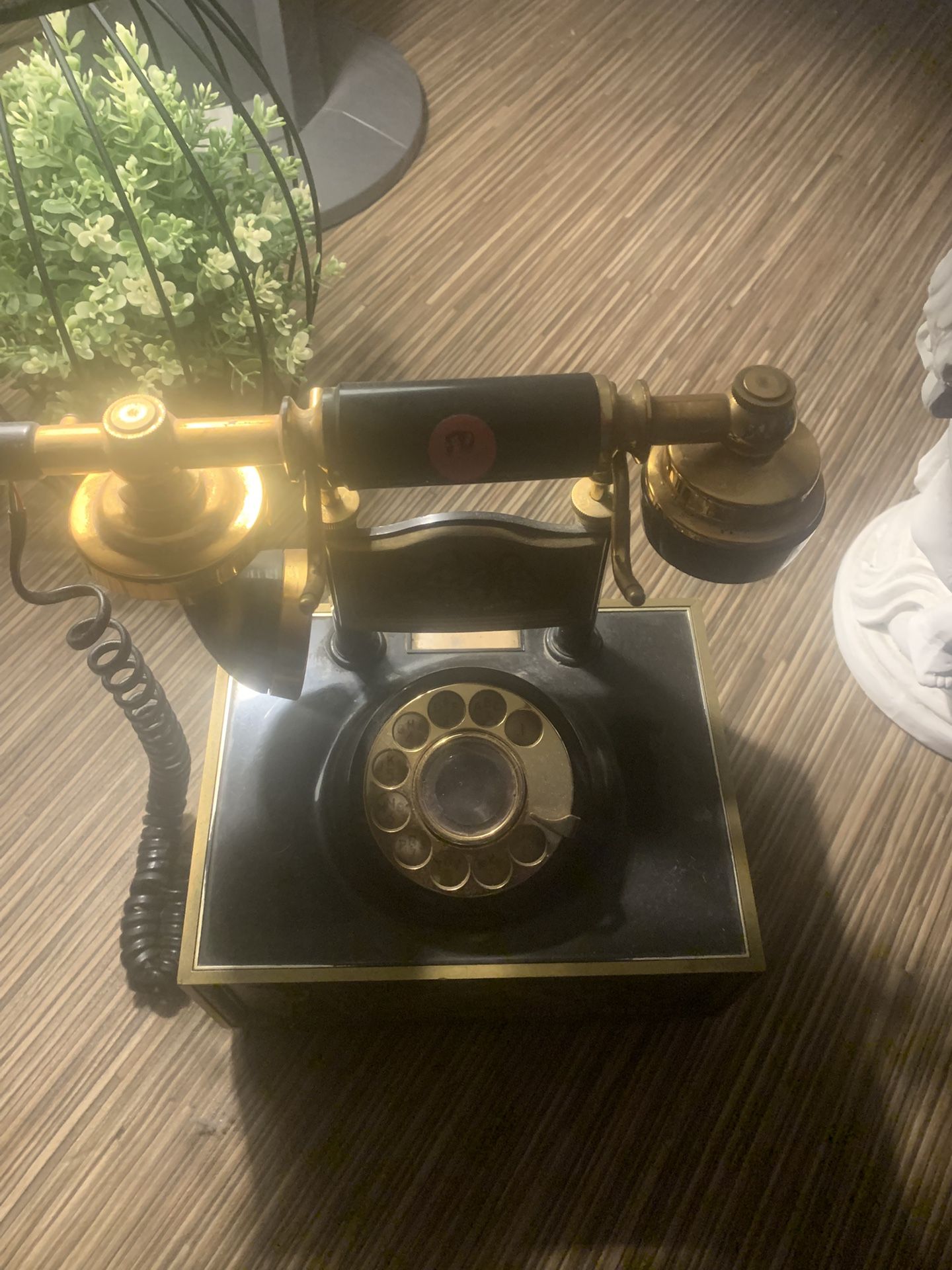 Vintage rotary phone works great original design and hand-rest gold and black very elegant