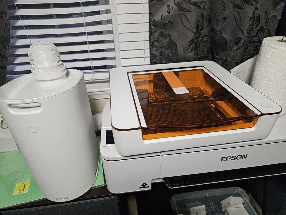 Glowforge use twice lost interest still works amazing Comes with the filter and accessories