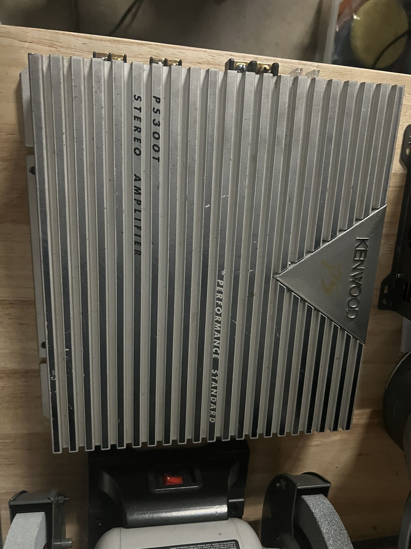 AB class 2 channel amp. 500 watts. Powers on and fans work. No sound output, may need a new transistor???