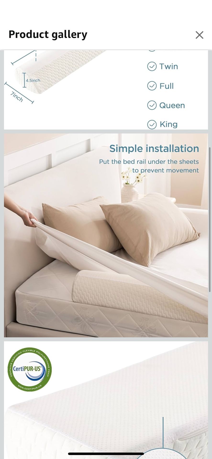 2 bed bumpers to prevent kids from rolling off the side of the bed. The bottoms have a light grip and you place it under the sheet. Worked wonders to keep my son from falling off.