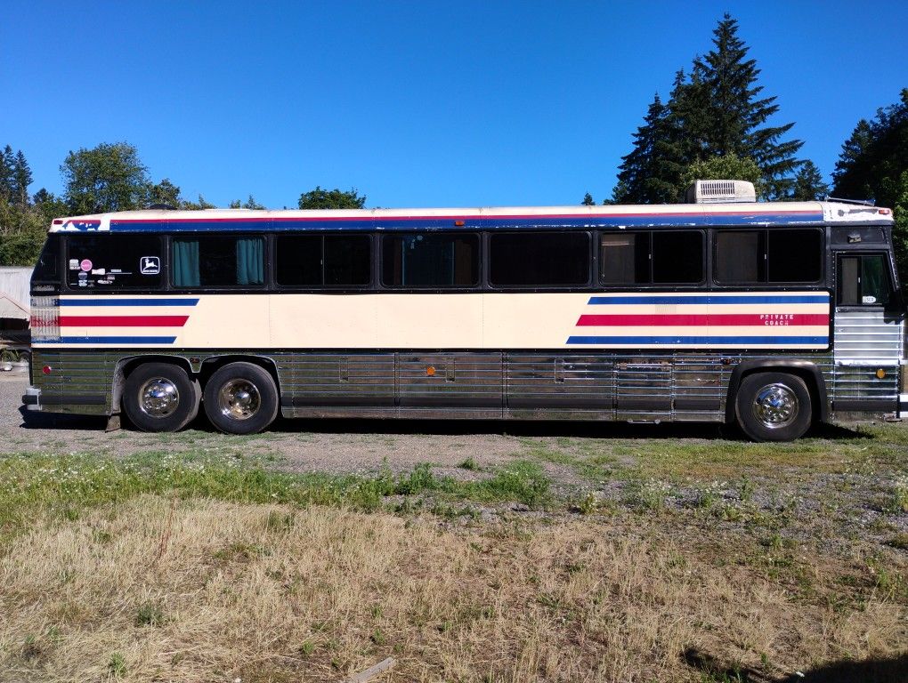 Orderd delete seats,started living quarters but not finished, plumbing electrical pretty much done great rig Detroit diesel air ride no cdl required, LICENSED AS PRIVATE COUCH trade?? What you got???