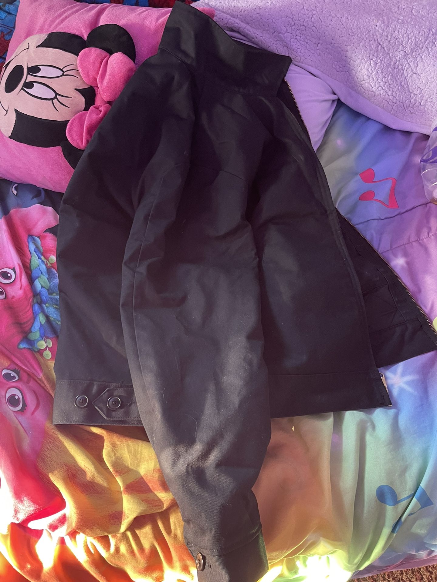 Good condition dickies jacket no rips has outside pockets and inside pockets I don’t wear it anymore so might as well sell it not sure how the sizing works on it look at the tag. Willing to trade for a nice pair of 501’s or some true religion pants.