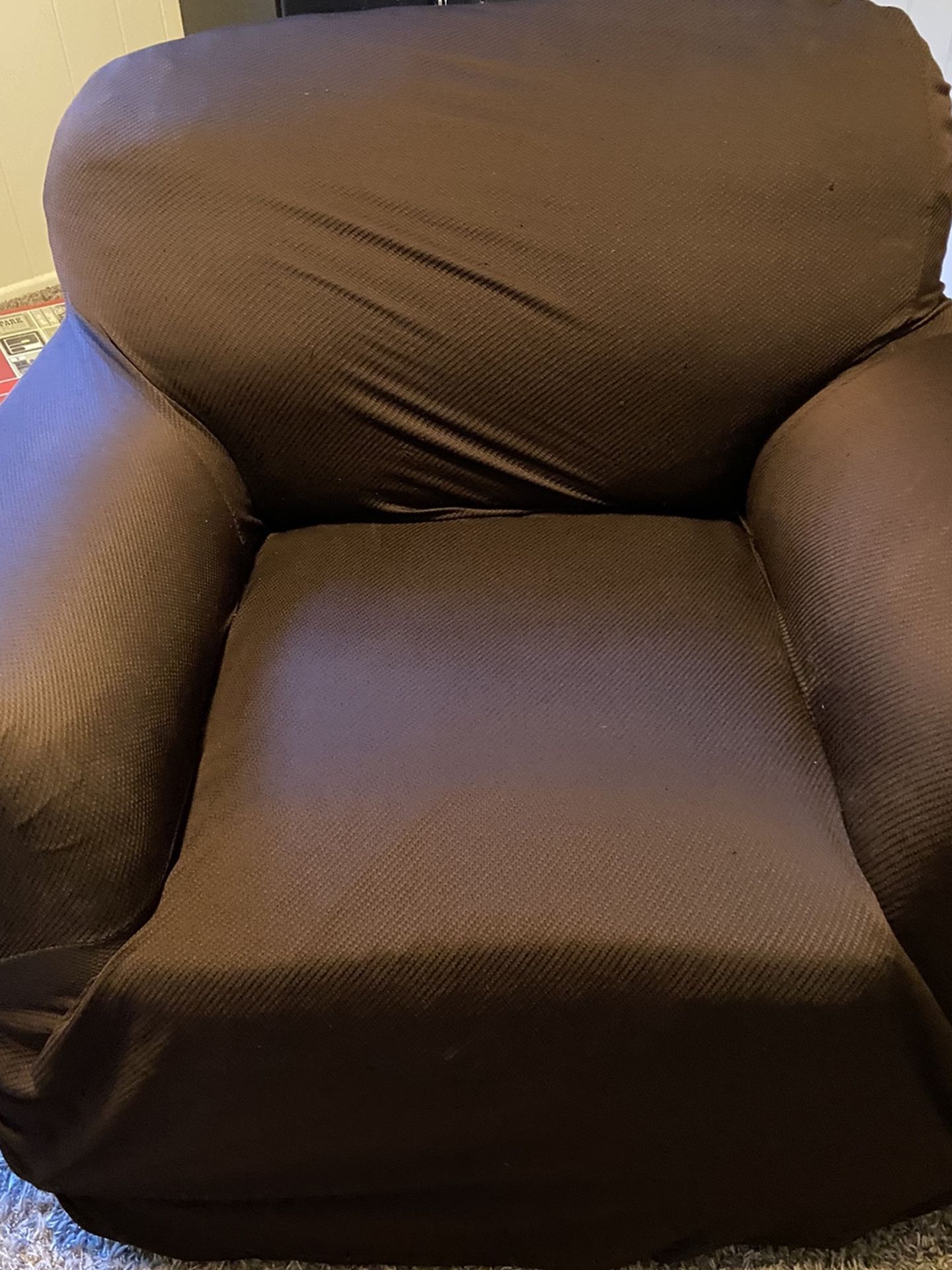 This chair is very comfy but the material is peeling off. I have put a chair cover on it which comes with it but it does not fit perfectly.
