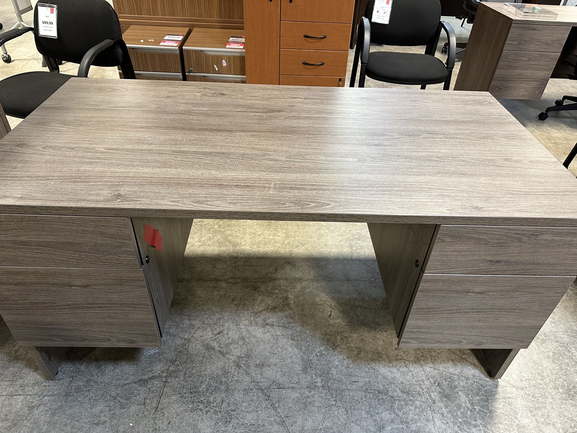 Gray-tone desi with emboss d wood look that integrates well with a variety of aesthetics. Both stylish and functional, the desk features smooth glide drawers and integrated cord management ensure your office space remains organized so you can achieve maximum productivity during every work day.