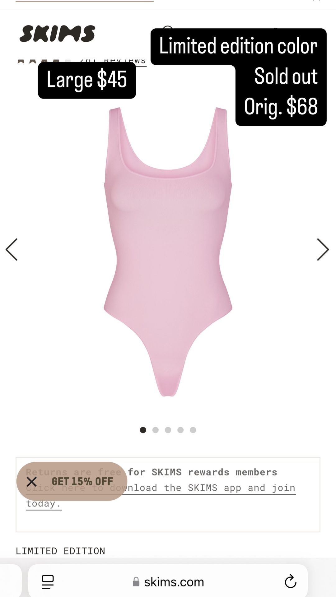Skims essential scoop neck bodysuit in cherry blossom size large $45
