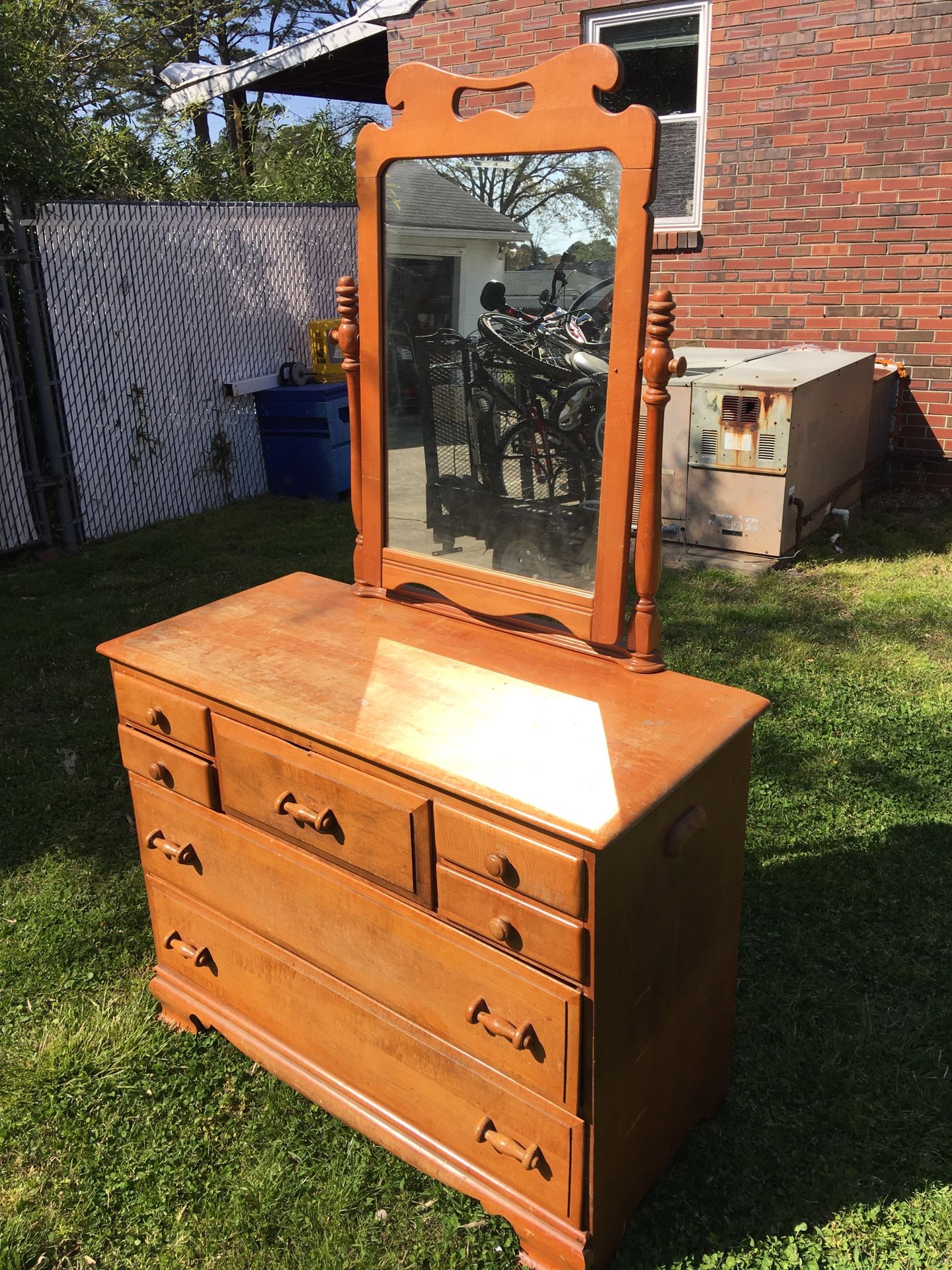 Vintage Dresser W Mirror (as is see pics- Drawers Work Good ) 44x34t x21d