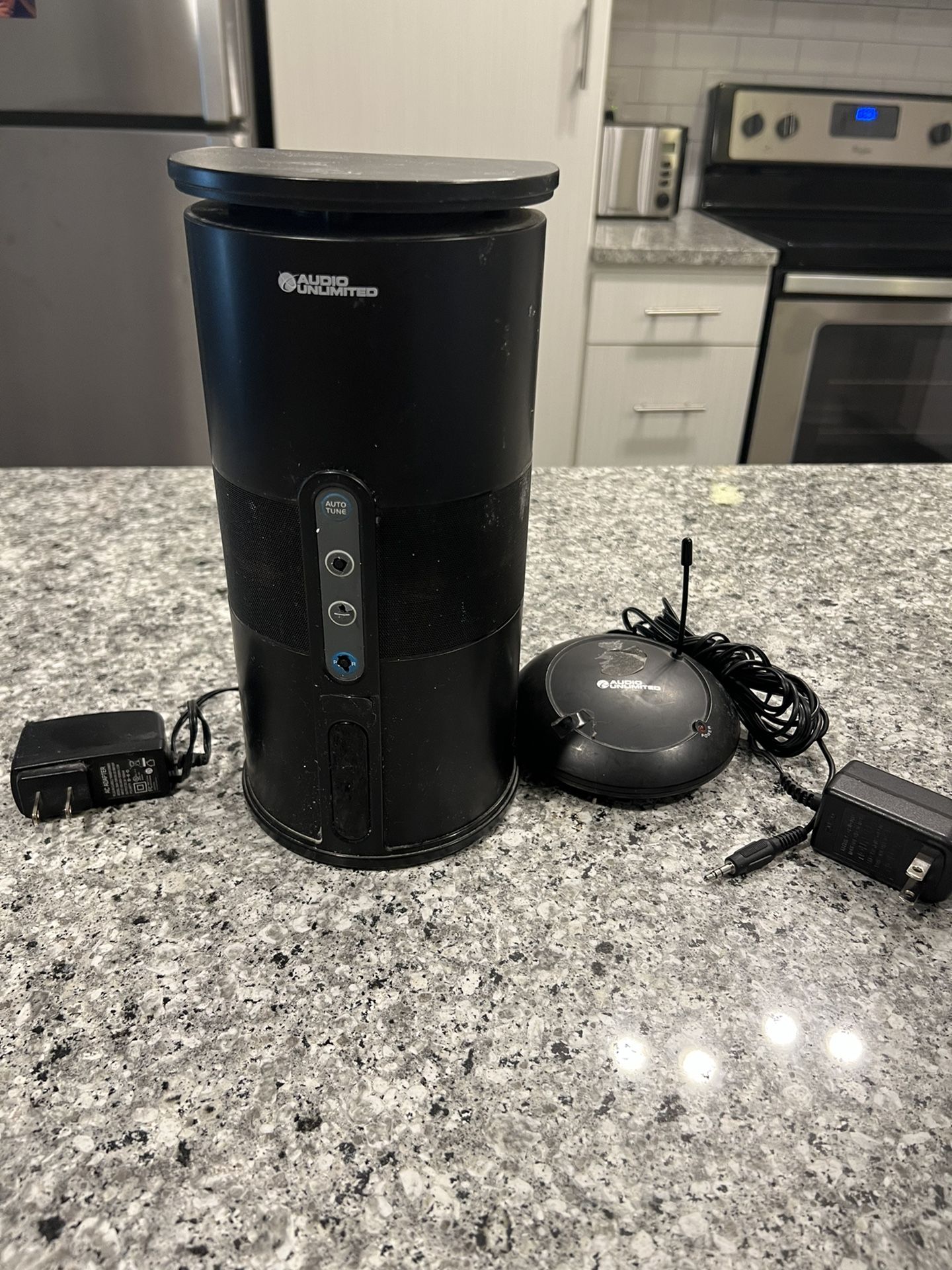 Throwback Thursday! The Bluetooth and Sonos of the 2000s! Plug in any audio device with a headphone Jack and it transmits it to the wireless speaker anywhere in the house or outdoors. Speaker can work plugged in or uses batteries. Speaker can be added on to current setups of the same brand or you can buy more speakers to add on for sound throughout the home. Asking $20
